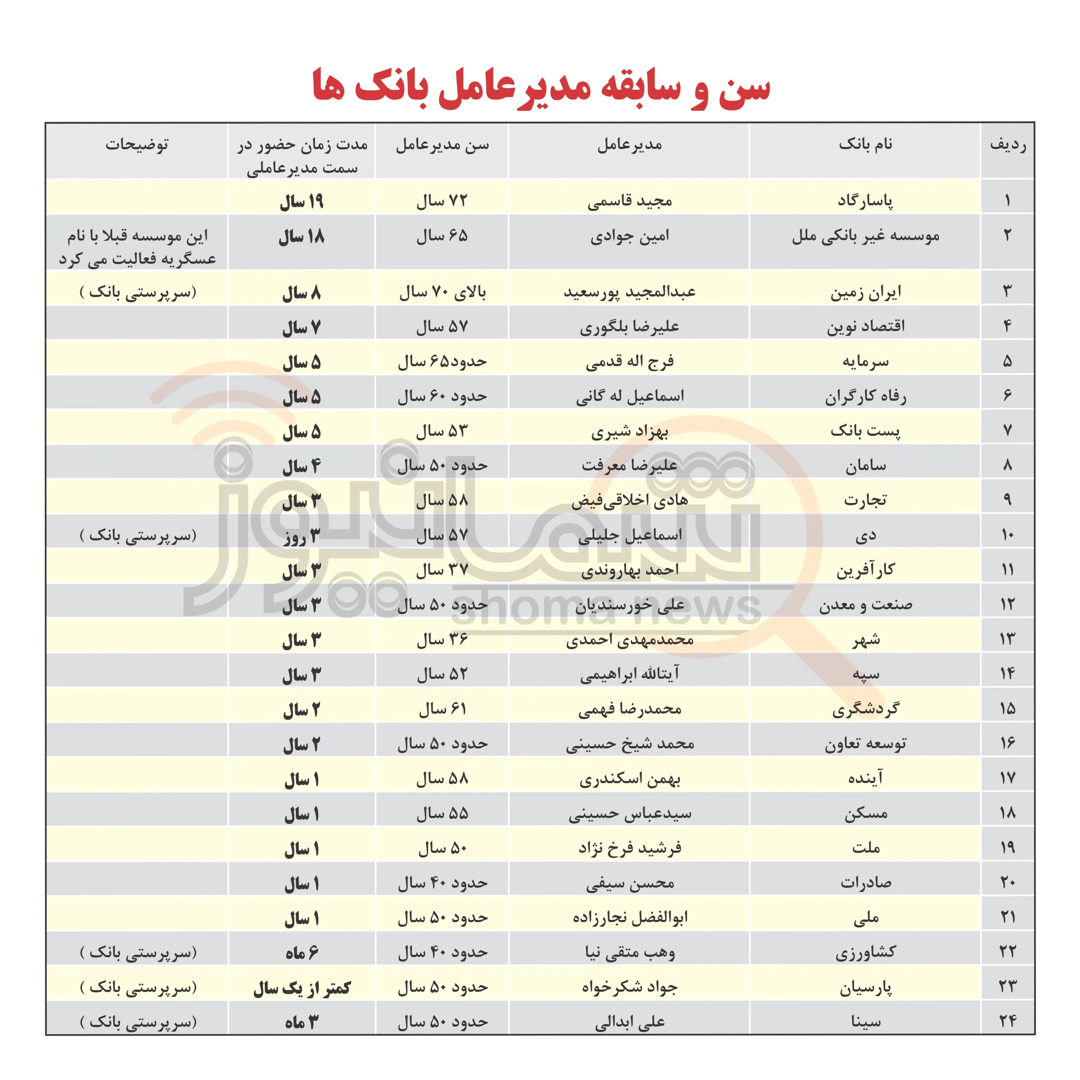 سن برخی از مدیران عامل بانکها حدودی درج گردیده است و اطلاعات کاملی در بیوگرافی موجود نبود.