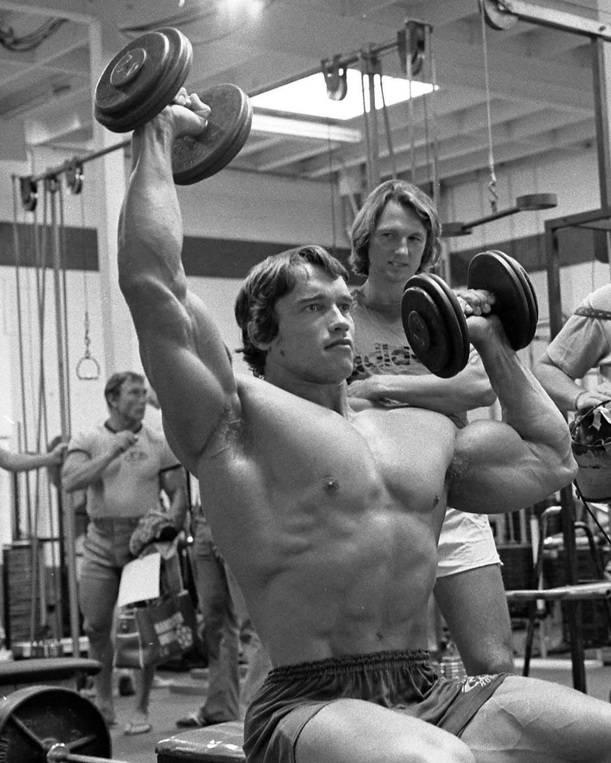 تصویری نوستالژیک از دهه ۷۰ میلادی و دوران اوج آرنولد شوارتزنگر، قهرمان افسانهای بدنسازی و ستارهی سینما.