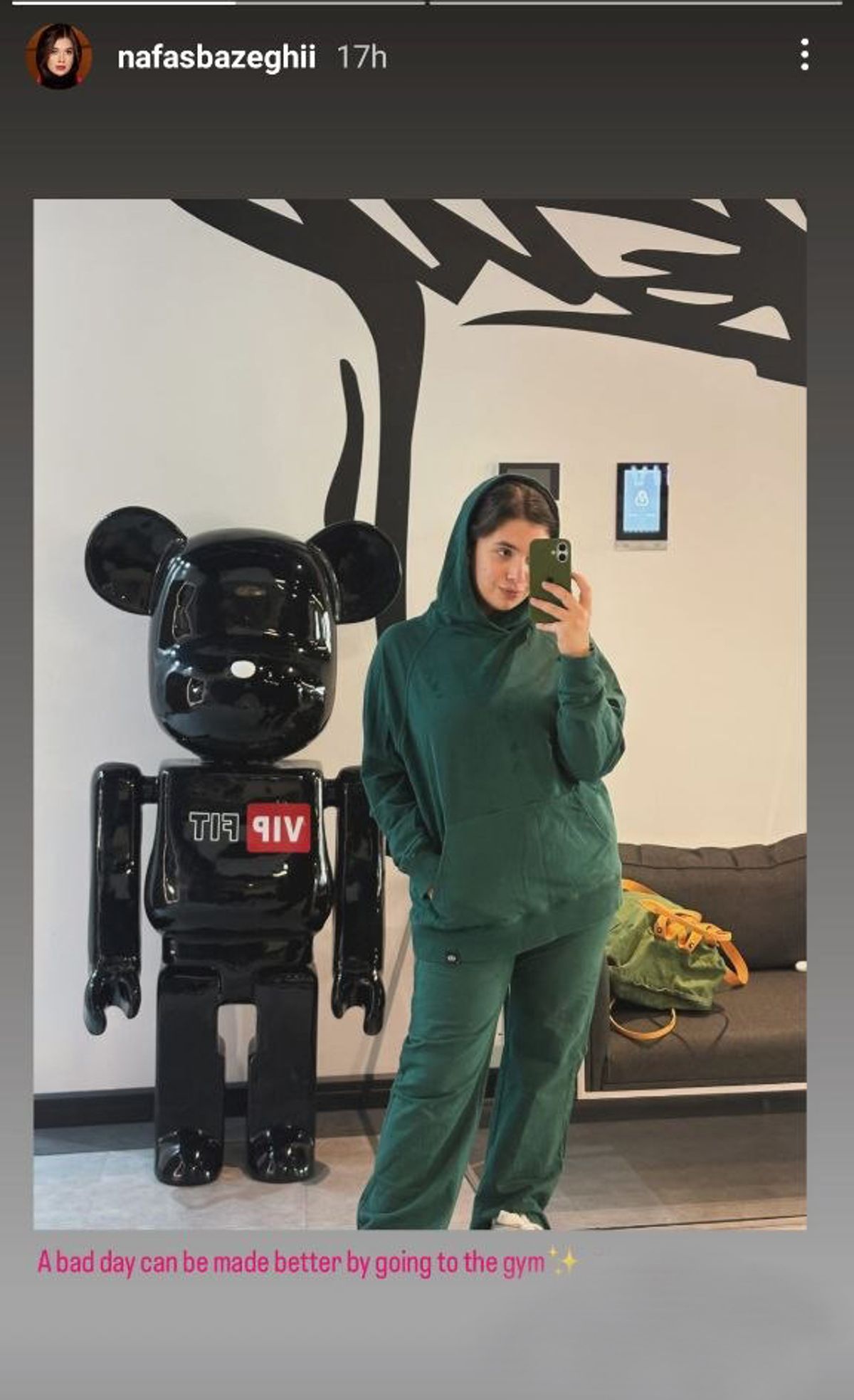 نفس بازغی، بازیگر جوان در استوری تازه خود تصویری متفاوت از حضورش در باشگاه مقابل آیینه منتشر کرد.