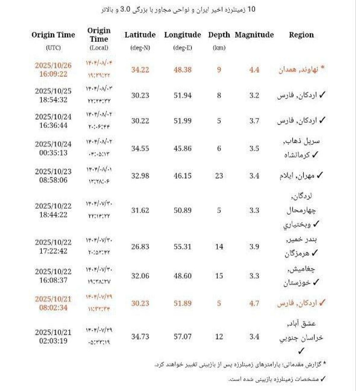زمین لرزه دقایقی قبل ۴.۴ ریشتر و مرکز آن نهاوند بوده است. این زمین لرزه در بخش هایی از شهر همدان و ملایر نیز احساس شده و به گفته مخاطبان شدت این زمین لرزه سابقه نداشته است.