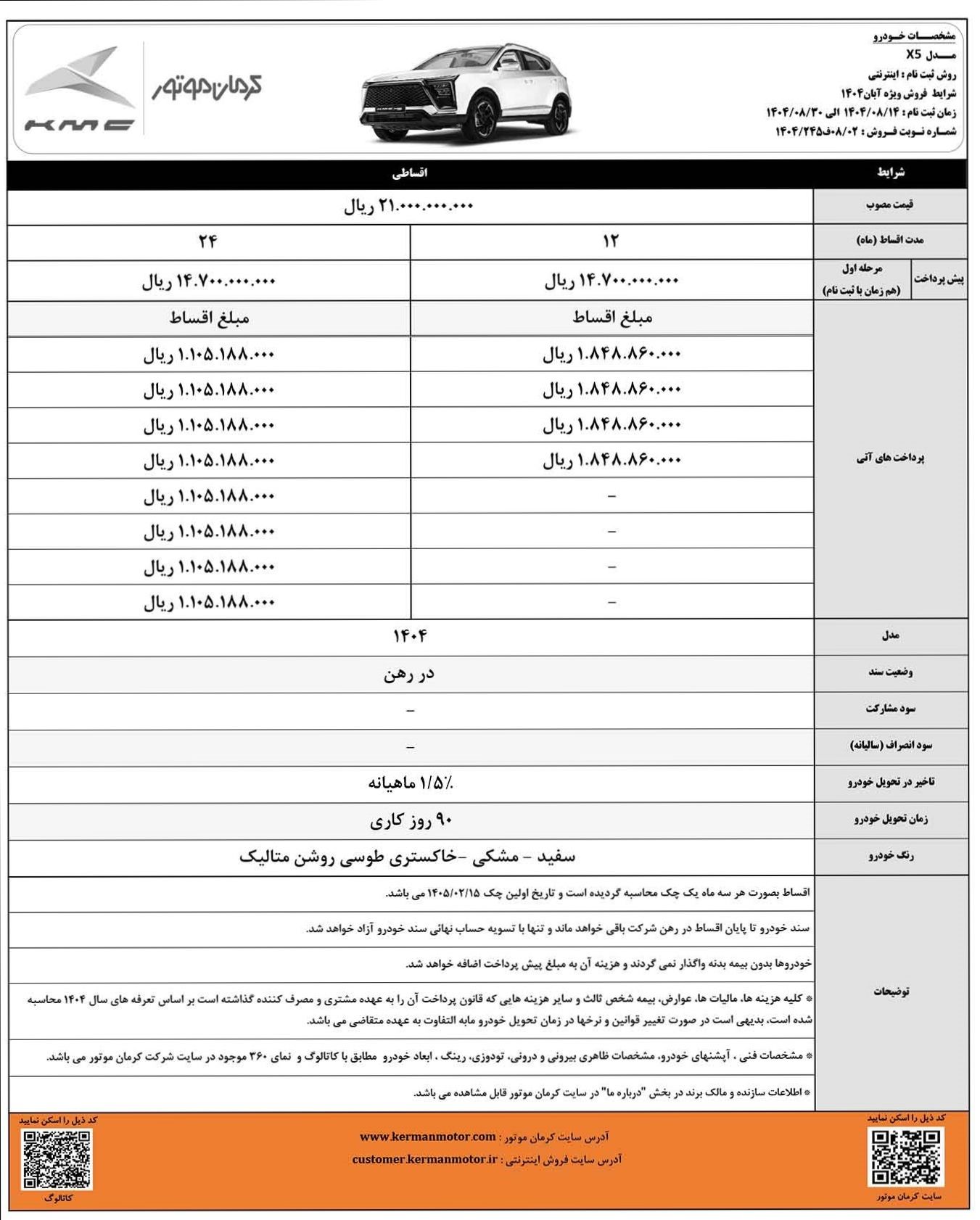 KMC X5 با قیمت مصوب ۲,۱۰۰,۰۰۰,۰۰۰ تومان و پیشپرداخت ۱,۴۷۰,۰۰۰,۰۰۰ تومان