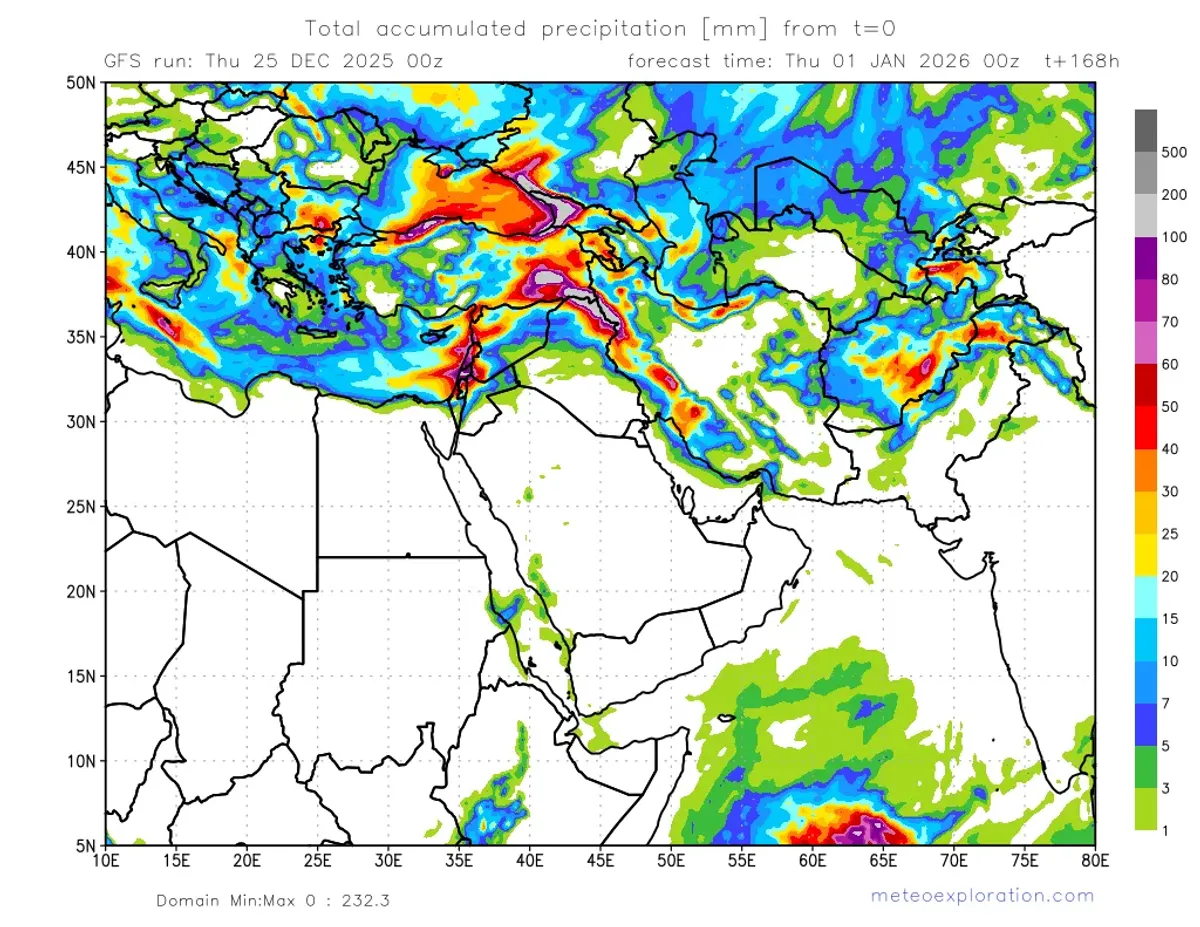 نقشه پیش بینی بارش ها در 7 روز آینده