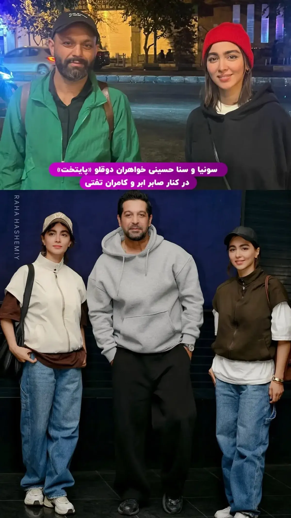سنا و سونیا حسینی، بازیگران شناخته شده سینما و تلویزیون، به تازگی در کنار چهرههایی چون صابر ابر و کامران تفتی در اکران نمایشهای مختلف حضور یافتند. هر دو در نمایشهای جداگانهای ایفای نقش کردهاند و دیدار آنها در این رویدادهای فرهنگی، با انتشار عکسهای مشترک همراه بود که مورد استقبال کاربران فضای مجازی قرار گرفت.