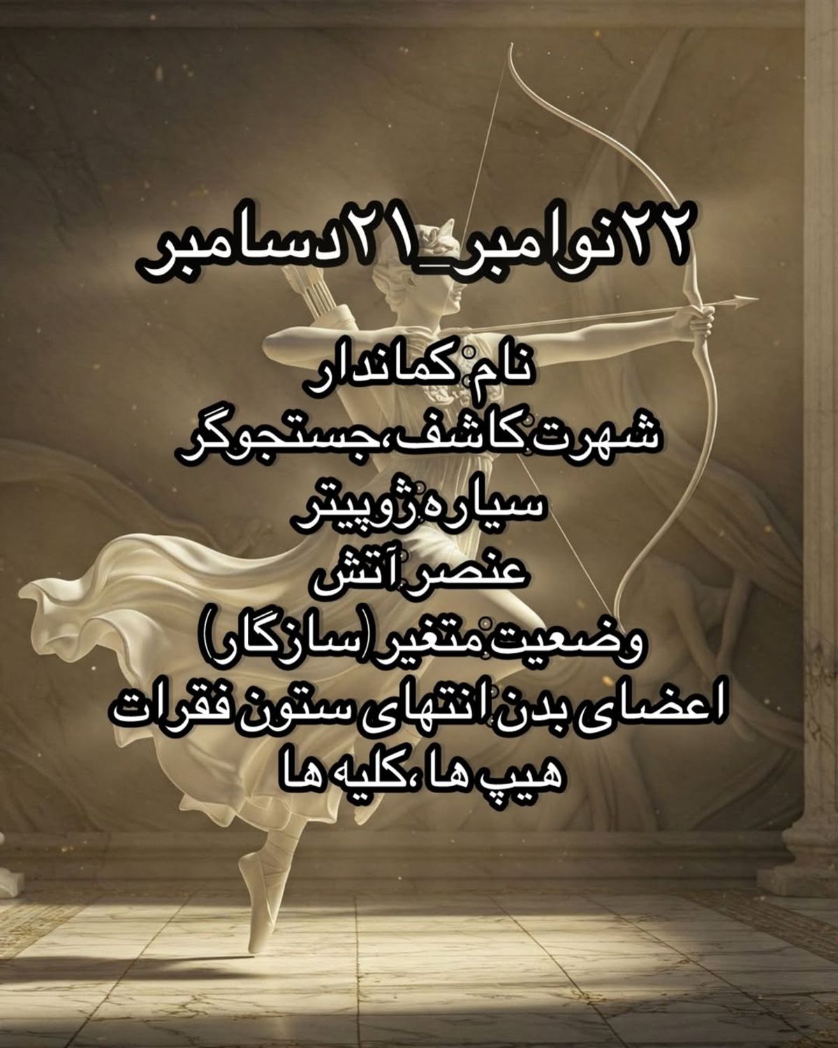 ۲۲ نوامبر تا ۲۱ دسامبر فصل کماندار است و این فصل فرصتهایی برای رشد، ماجراجویی و کشف دنیای درونی شما فراهم میکند.