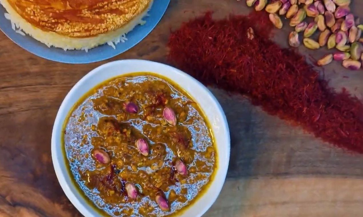 طرز تهیه خورشت اعیانی با پسته و برنج زعفرانی
