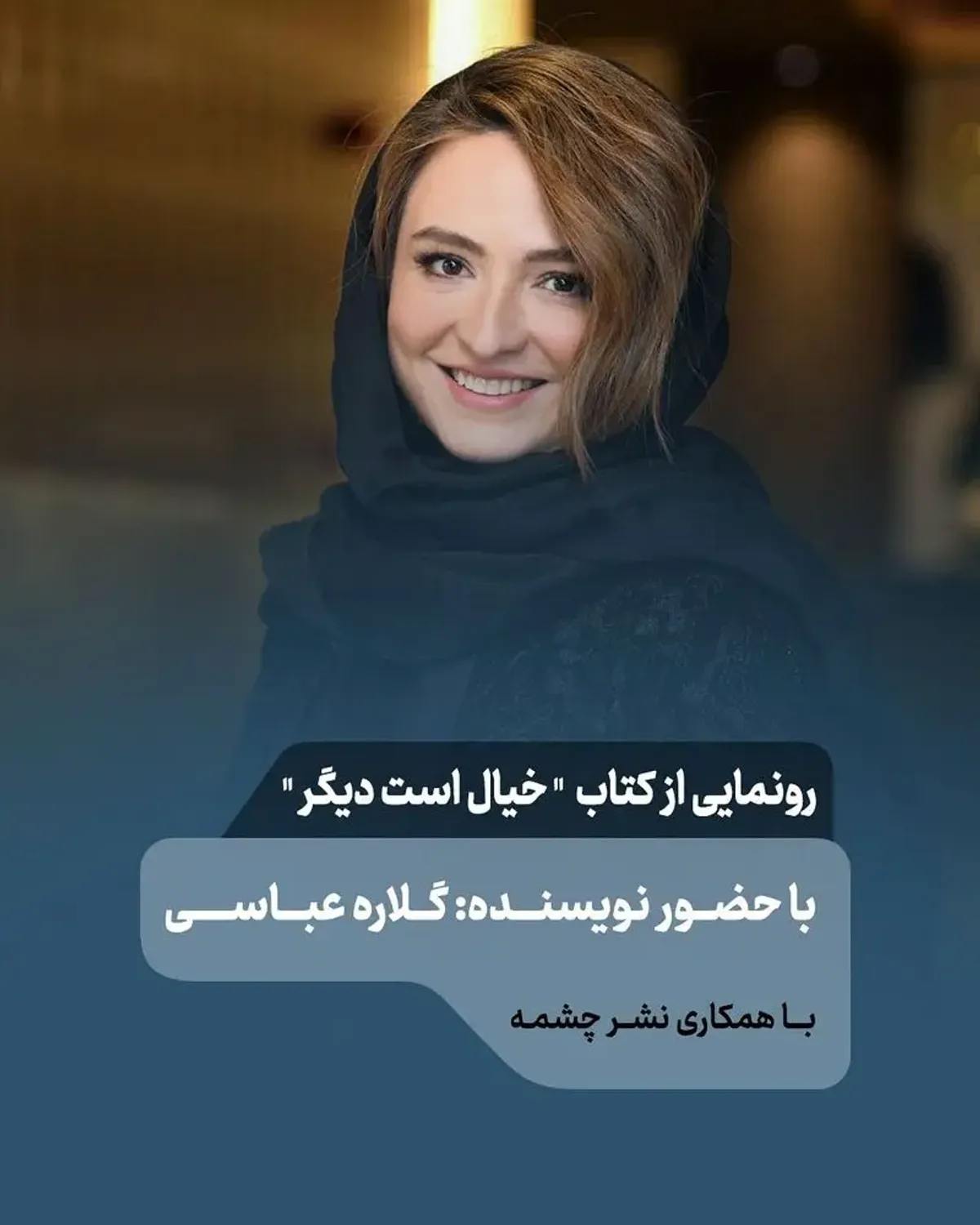 گلاره عباسی نخستین کتاب خود با عنوان «خیال است دیگر» را در مراسمی رسمی در شهر شیراز و با همکاری نشر چشمه در پنجشنبه ۱۷ مهر ساعت۱۶:۳۰ در مرکز فرهنگی آبی رونمایی خواهد کرد.