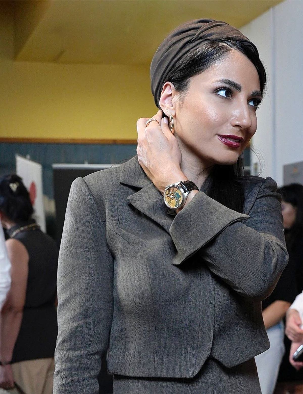 سمیرا حسن پور با ساعت طرح خلیج فارس و یوزو ایرانی در فستیوال دبی