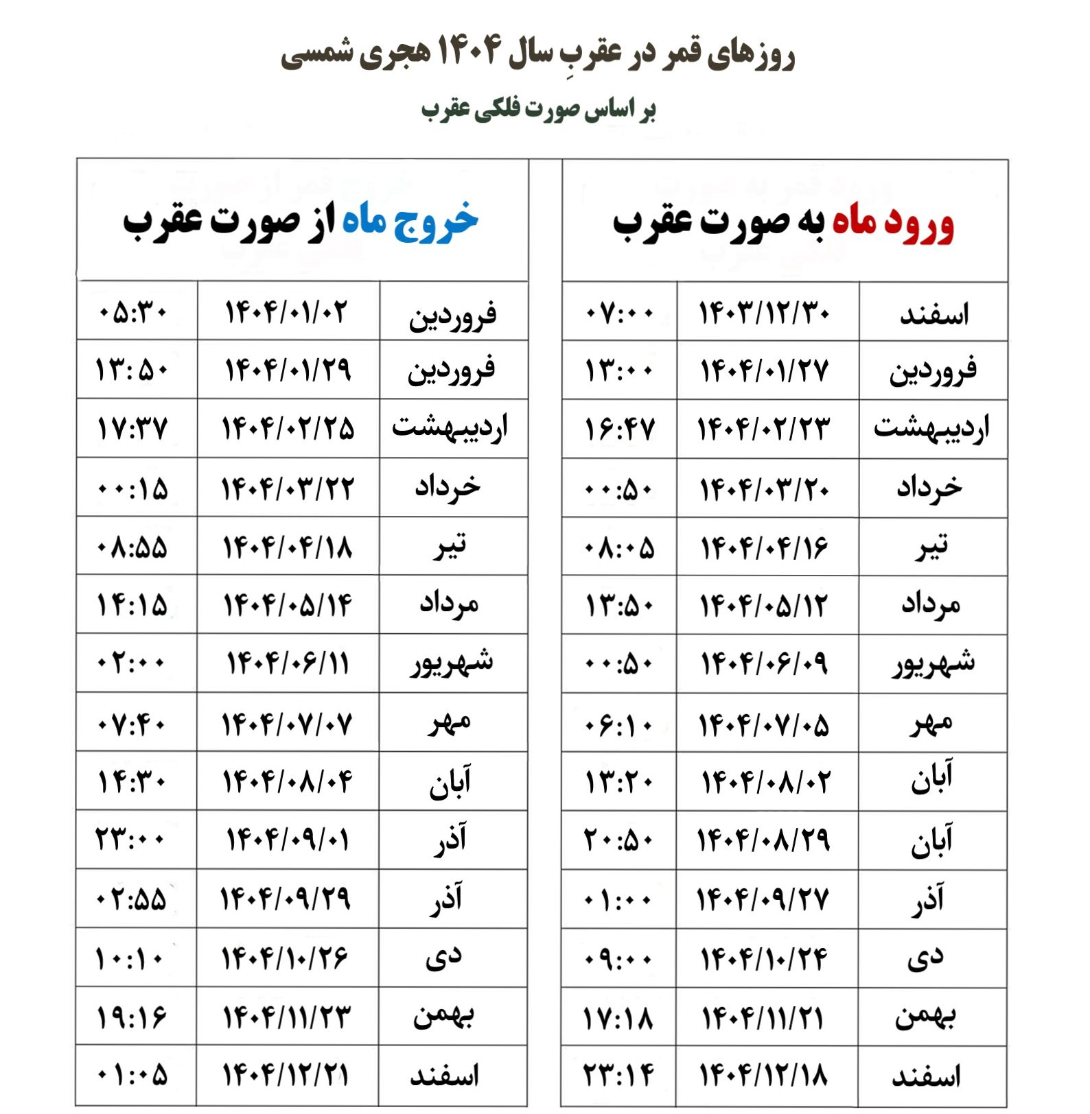 جدول دقیق روزهای قمر در عقرب ۱۴۰۴