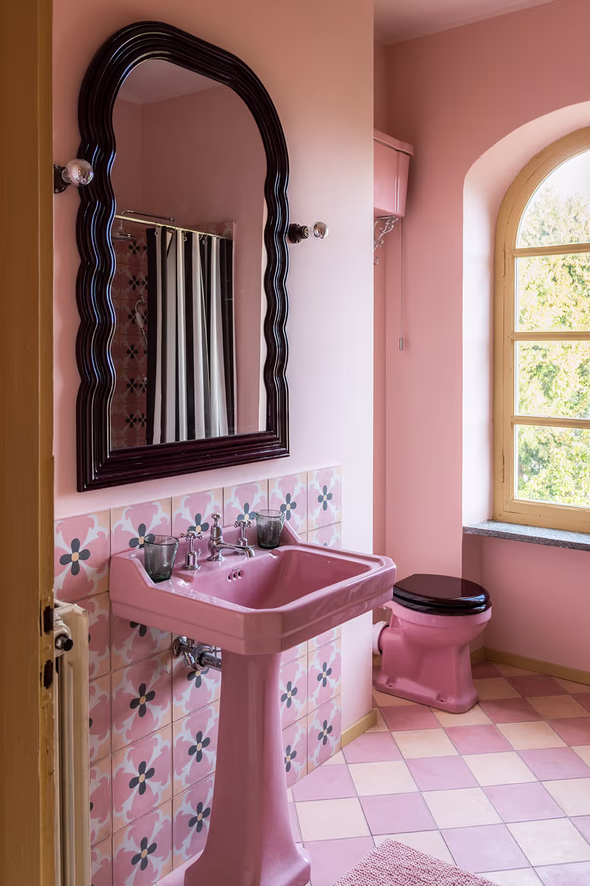کیت واتسون-اسمیث معمولاً در انتخاب رنگهای خانهاش محتاط است، اما این صورتی شاد در حمام ایتالیایی او، هر بار که وارد میشود، یک حس لذت و سرزندگی کوتاه ایجاد میکند.
