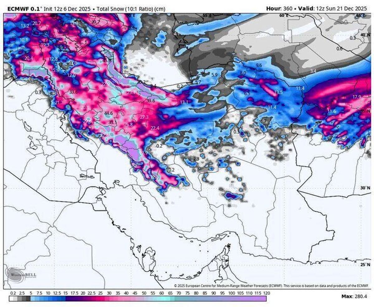 این بارشها از دوشنبه تا پنجشنبه (۱۷ تا ۲۰ آذر) به استانهای خوزستان، چهارمحال و بختیاری، کهگیلویه و بویراحمد، همدان، مرکزی، قزوین، البرز، تهران، قم، گیلان و مازندران نیز گسترش مییابد. چهارشنبه بارشها به غرب اصفهان و پنجشنبه به شمال فارس، بوشهر و جزایر شمال خلیج فارس هم میرسد. تهران طی دو روز آینده نیمهابری تا ابری همراه با بارش باران، وزش باد و احتمال رعد و برق پیشبینی شده است.