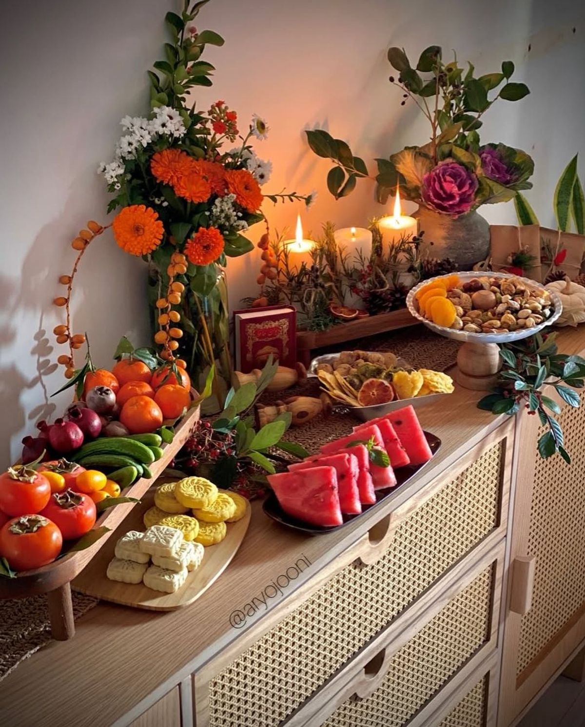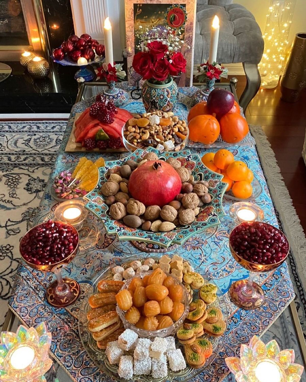 چیدمان میز یلدا | میز یلدای لاکچری
