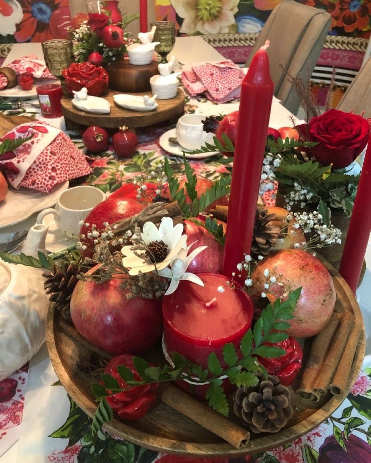 20 ایده چیدمان میز یلدا | یلدای مدرن با اکسسوری‌های ترند | ترکیب انار و شمع؛ یلدایی گرم و عاشقانه