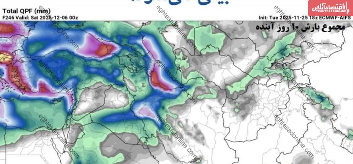 بر اساس آخرین پیشبینیهای هواشناسی مدل ECMWF-AIFS (از تاریخ ۲۵ نوامبر ۲۰۲۵)، یک دوره بارندگی فعال به مدت ۱۰ روز (تا ۶ دسامبر ۲۰۲۵ / ۱۶ آذر ۱۴۰۴) از غرب کشور آغاز میشود که پتانسیل چشمگیری برای بهبود ذخایر آبی مناطق خشک و نیمهخشک کشور دارد. این سامانه، که از نفوذ عمیق توده هوای قطبی مرطوب نشأت میگیرد، بیشترین تأثیر خود را بر رشتهکوههای زاگرس و شمال غرب خواهد گذاشت.