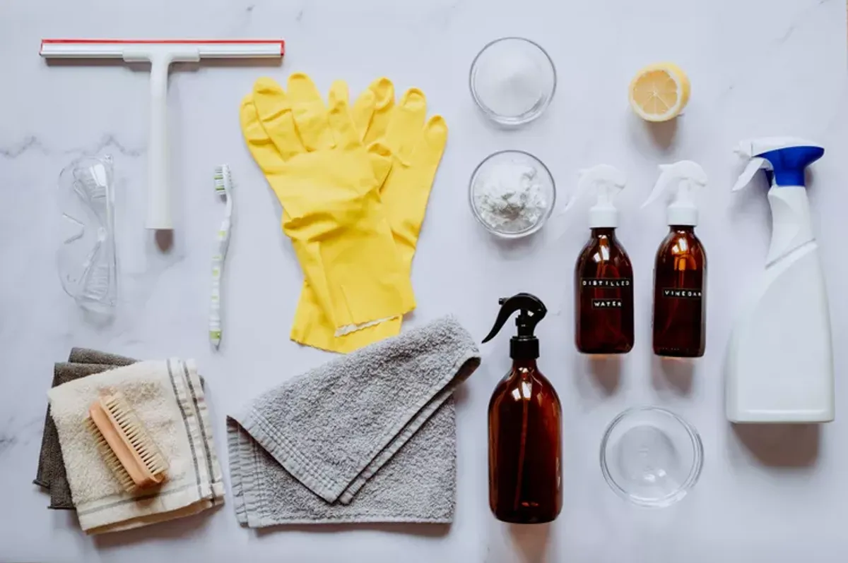 وسایل مورد نیاز برای تمیز کردن رسوبات آب از شیشه و آینه