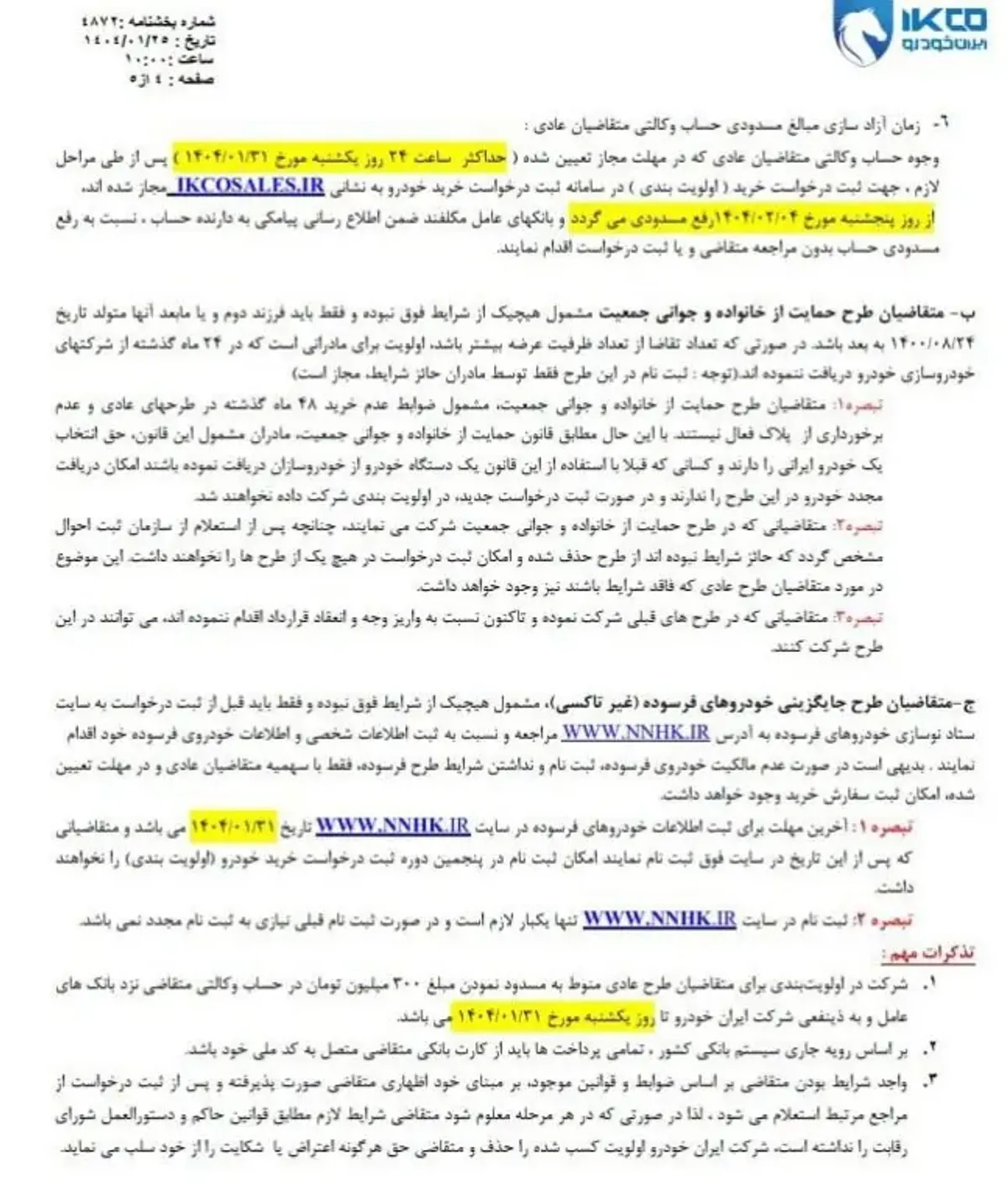جزئیات شرایط پیش فروش و فروش فوقالعاده محصولات ایران خودرو اعلام شد. فروش ۱۰ محصول ایران خودرو از جمعه ۲۹ فروردین ۱۴۰۴ آغاز میشود.