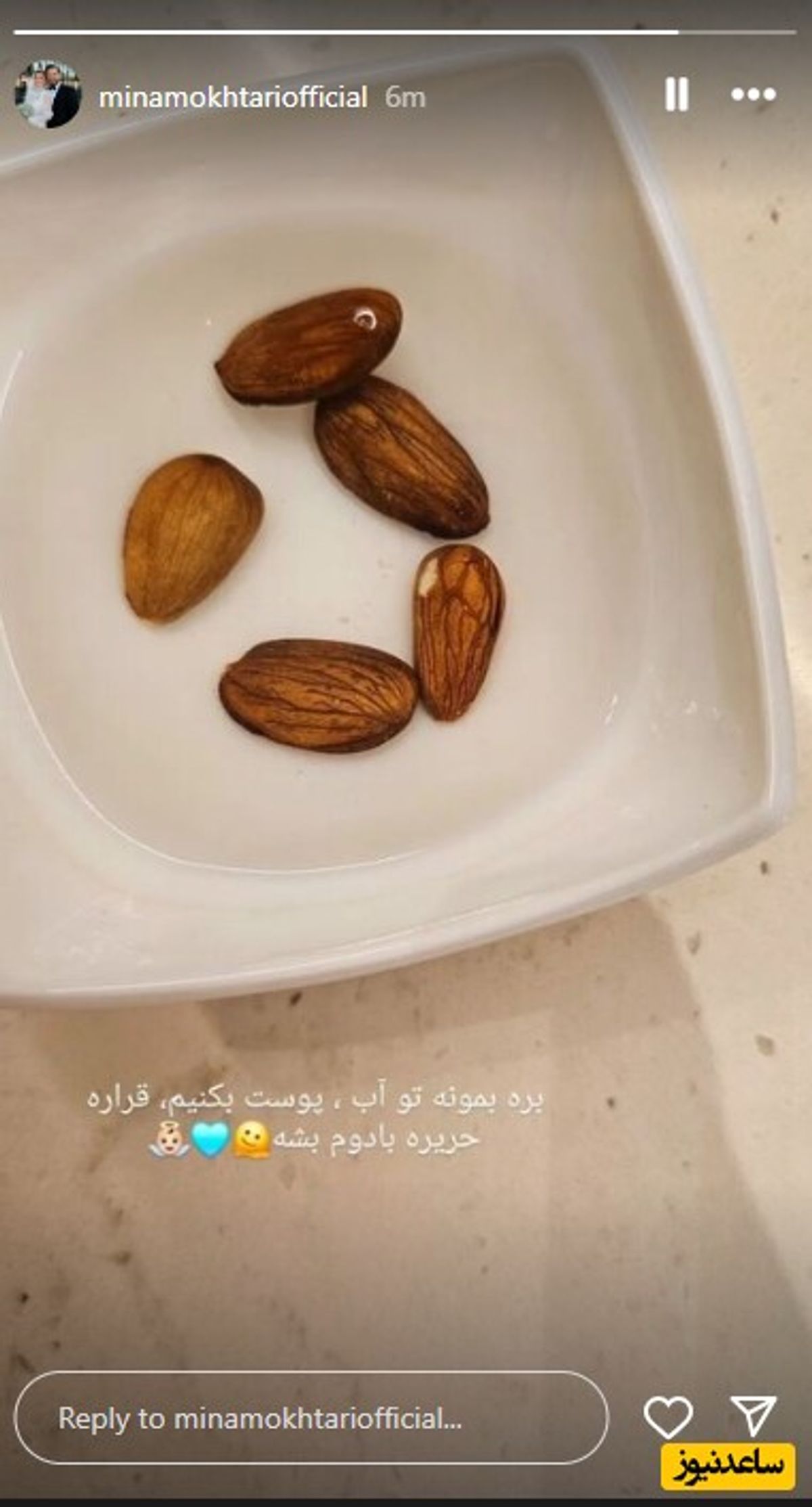 تصویری از استوری مینا مختاری همسر بهرام رادان را مشاهده بفرمایید. در این تصویر مینا مختاری در حال آماده سازی غذای پسر خود است.