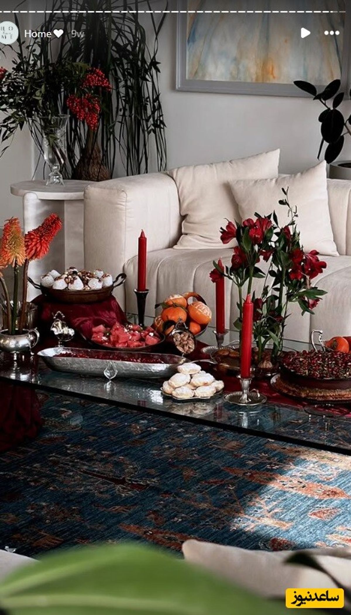 دکوراسیون خانه مینا مختاری و بهرام رادان برای بهار 1404؛ از فرش زمردی و گلهای غولپیکر تا مبلمان شیک