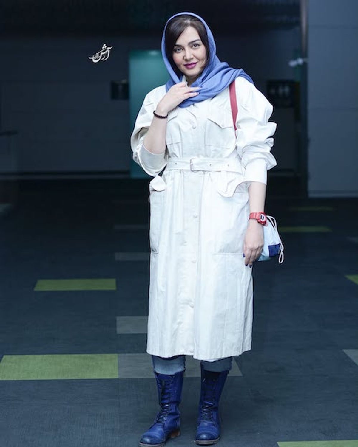 ندا در این مراسم یک بارانی بلند کرمی با طراحی ساده و در عین حال بسیار زیبا به تن کرده بود که به خوبی با شلوار جذب و نیمبوتهای چرم او هماهنگ شده بود. استایل او با یک کیف دوشی کوچک و مدل موهای سادهاش، به طور کامل تکمیل شده بود. شال آبی او هماهنگ با بلوز زیر بارانی و ساعت مچی قرمزرنگش هماهنگ با بند کیف، تیپ او را به سرانجام رسانده بود.