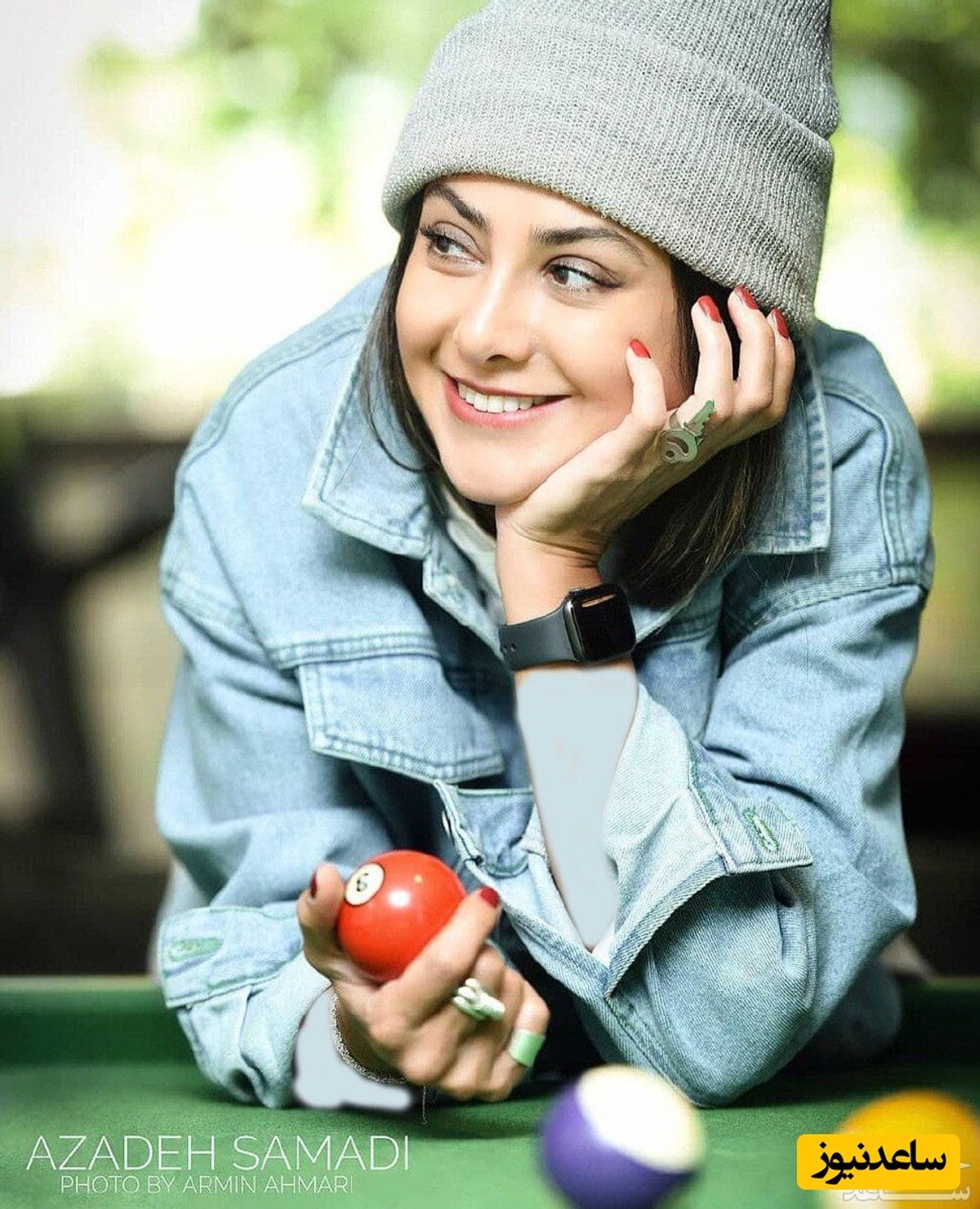 استایل شیک آزاده صمدی در بازی بیلیارد