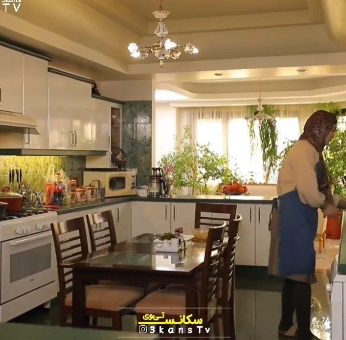 دکوراسیون آشپزخانه متین ستوده تازه عروس سینمای ایران | جلوه کابینت های سفید و کاشیهای سبز رنگ در آشپزخانه غرق نور متین ستوده