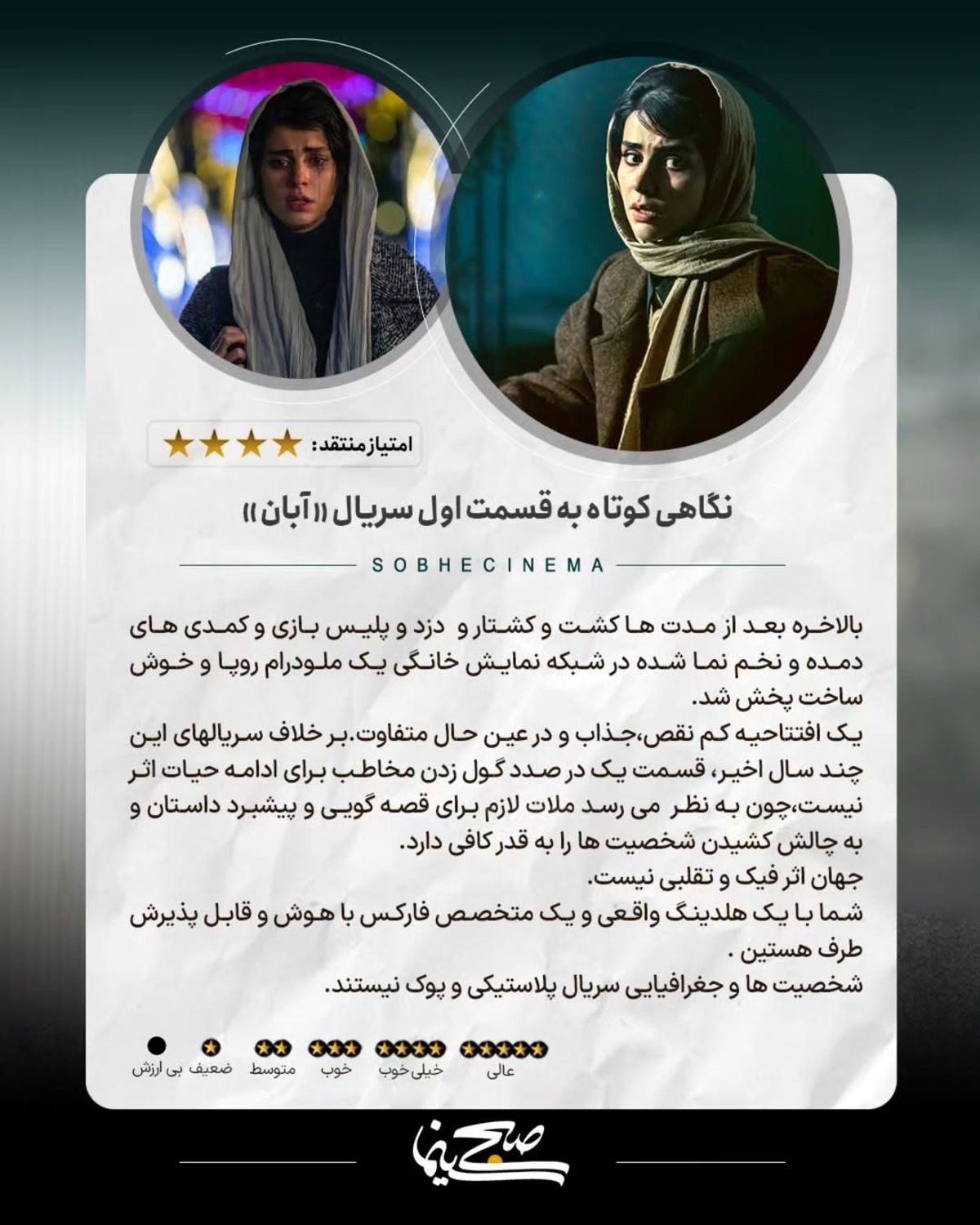 تحلیل تصویری و نقد کوتاه صبح سینما برای قسمت افتتاحیه سریال آبان را در تصاویر زیر بخوانید.