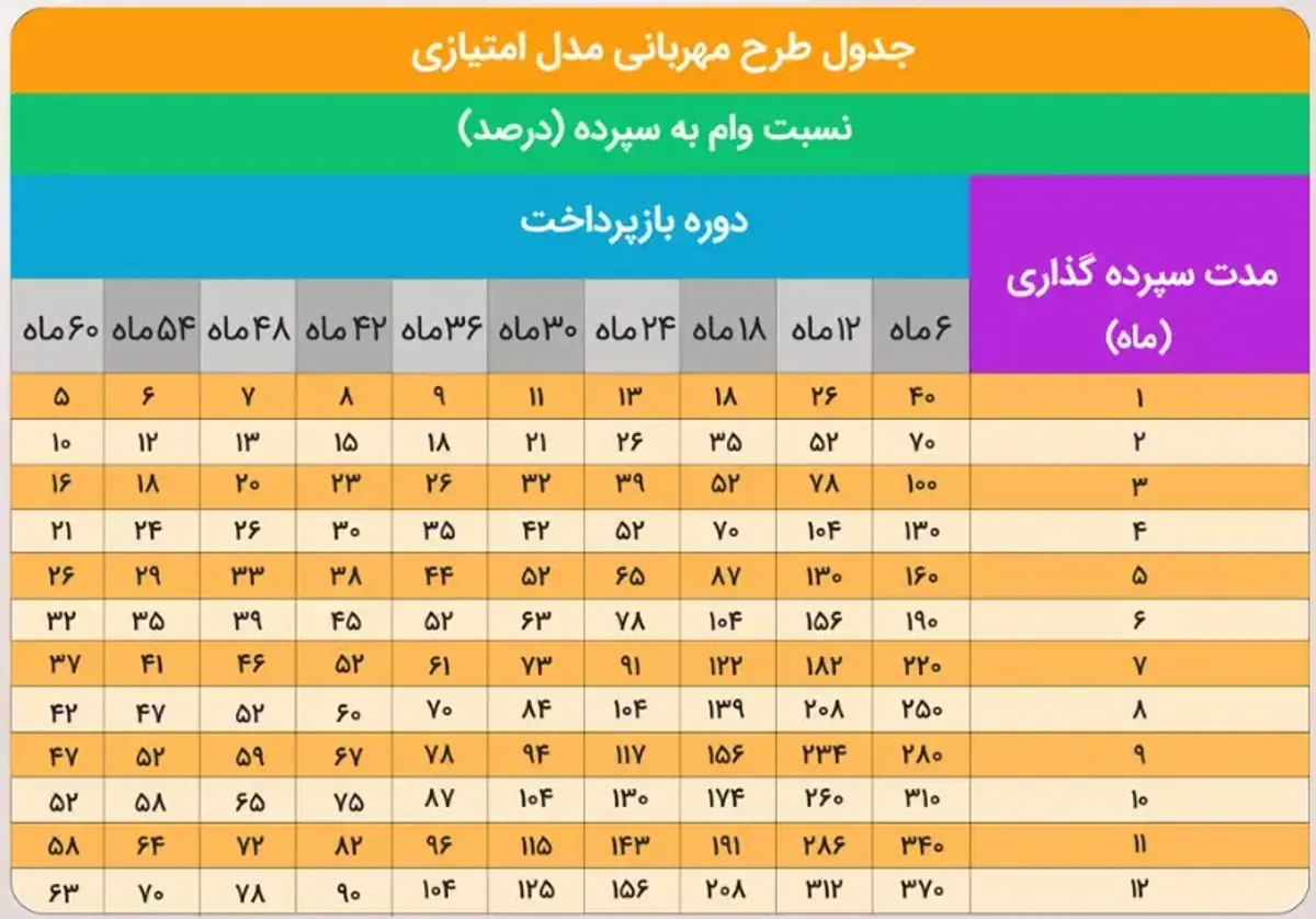 جزئیات بیشتر از وام مهربانی بانک ملی در جدول زیر نمایش داده شده است.