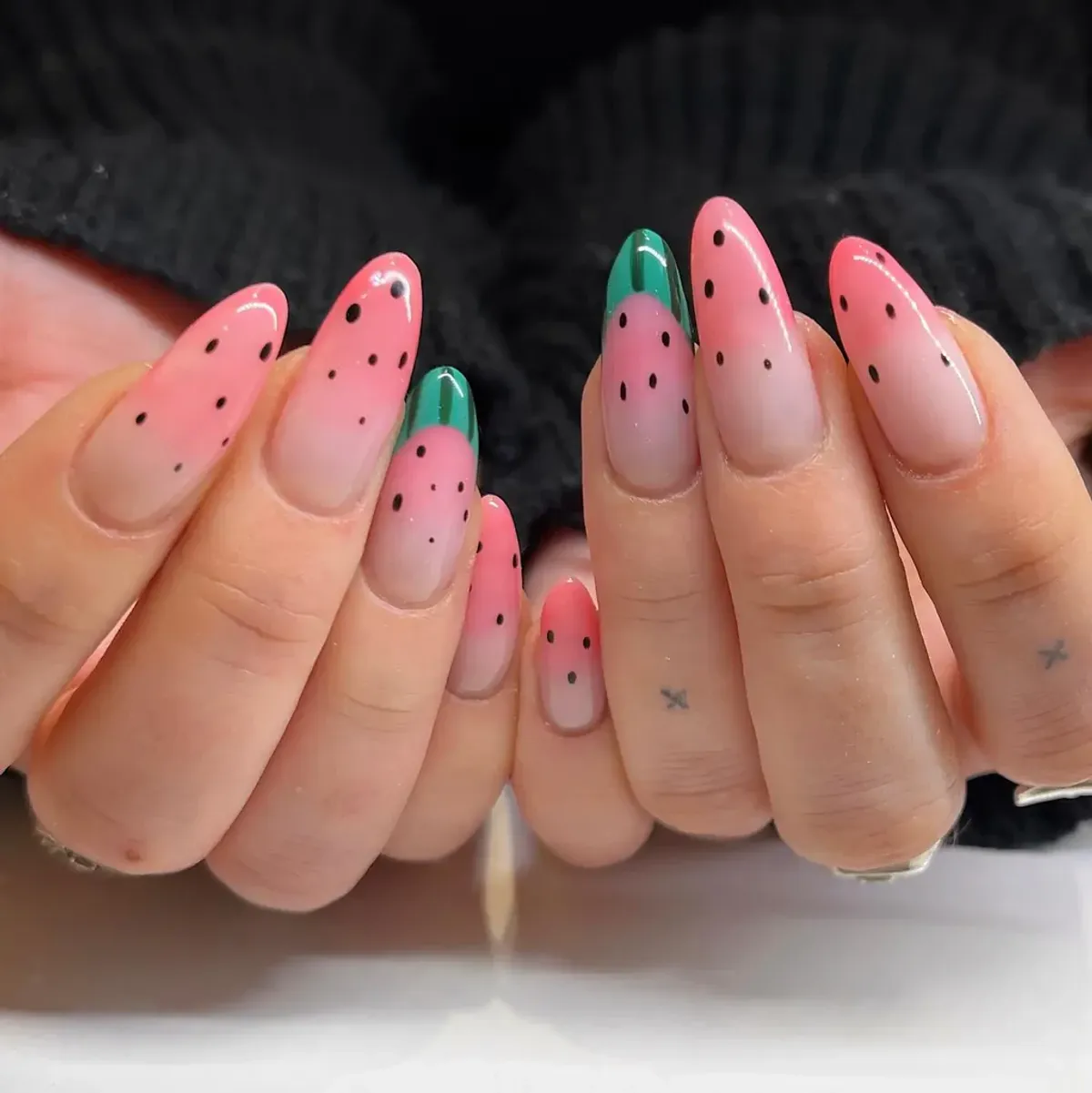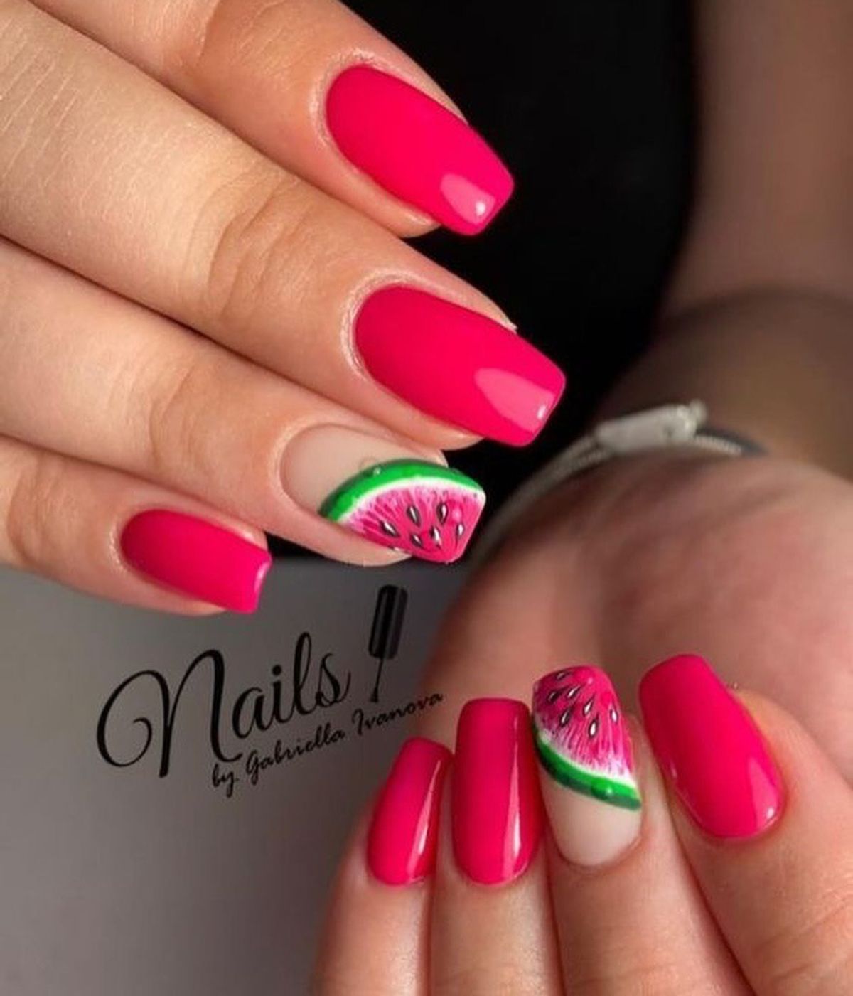 برای یک ظاهر شیک و خاص، میتوانید ناخنهای خود را به صورت مینیمال با انارهای کوچک و هندوانههای ظریف تزئین کنید. اگر به طرحهای جذابتر علاقه دارید، از براقکنندهها یا نگینها برای برجسته کردن این طرحها استفاده کنید.