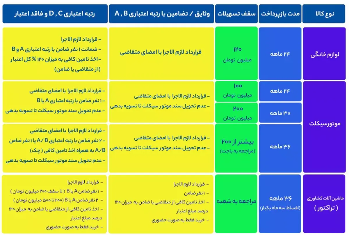 جزئیات بیشتر از وام خرید کالای بانک تجارت در جدول زیر نمایش داده شده است.