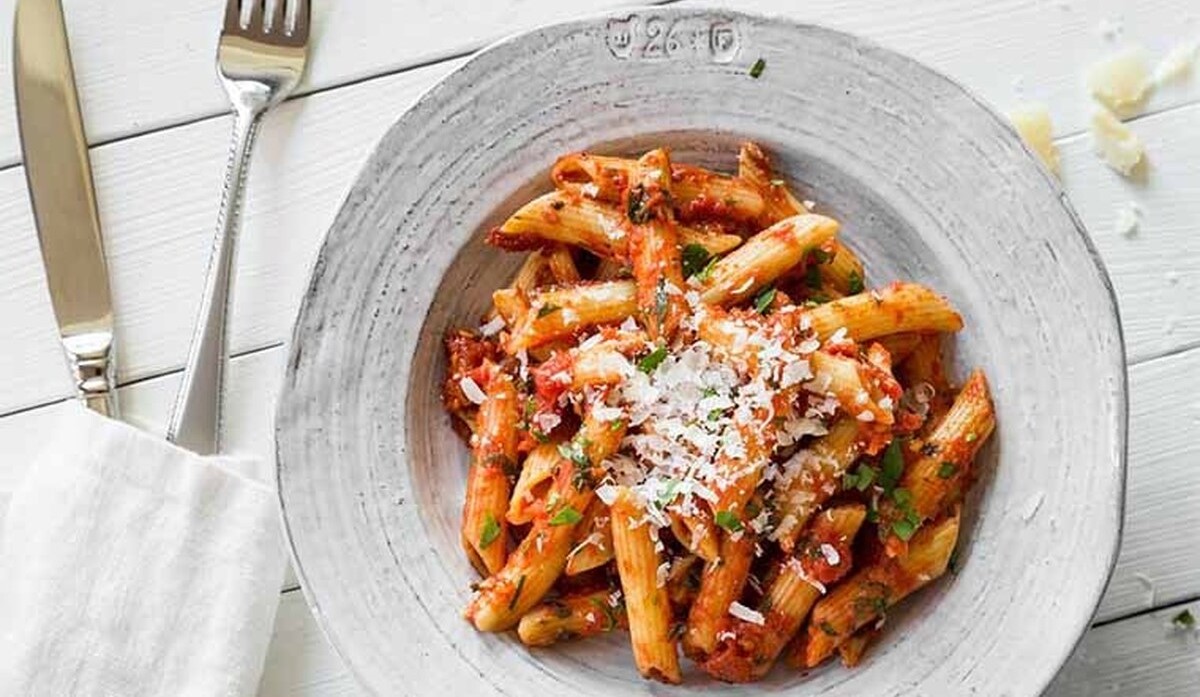 ۱ ـ امروزه پاستا در اشکال و انواع گوناگون در فروشگاههای مواد غذایی وجود دارد. برای تهیه پاستا در منزل بهتر است از پاستا پنه استفاده کنید؛ زیرا به طور معمول پاستا را با نوع پنه تهیه میکنند. در صورتی که پاستا پنه در دسترس نداشتید، میتوانید از انواع دیگر پاستا نیز استفاده کنید. هنگام جوشاندن پاستا پنه توجه داشتید که نباید آن را بیش از حد بجوشانید. بافت پاستا باید زیر دندان حس شود و بیش از حد له نباشد. بعد از آبکش کردن پاستا هرگز پاستا را به سبک ماکارانی با آب نشویید.