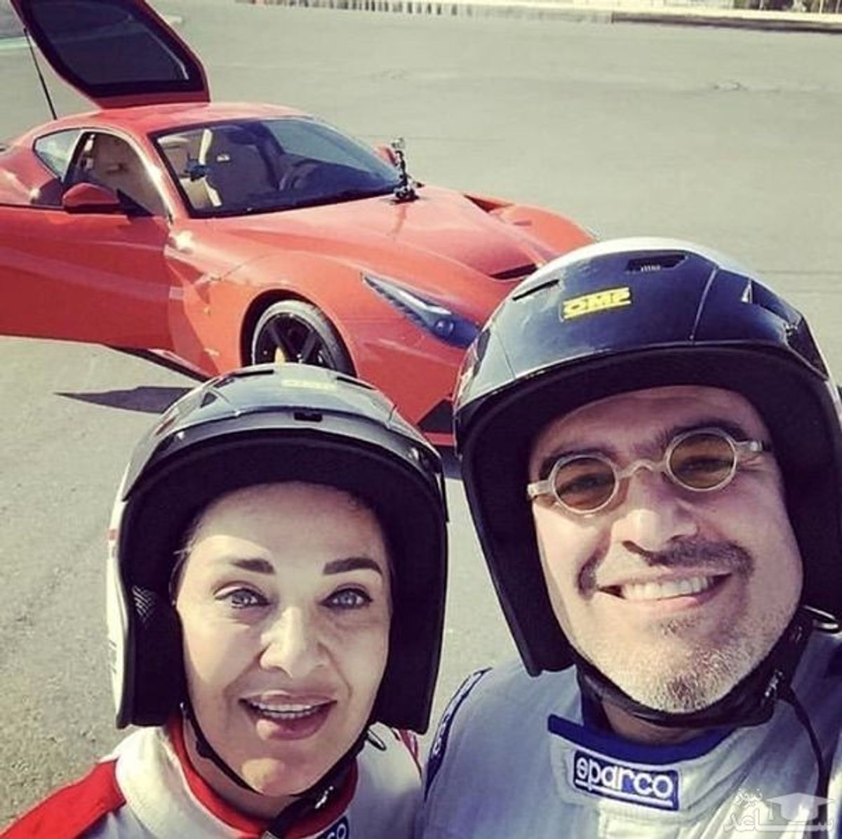 عکسی جذاب از رویا نونهالی و همسرش در کنار ماشین مسابقهای!