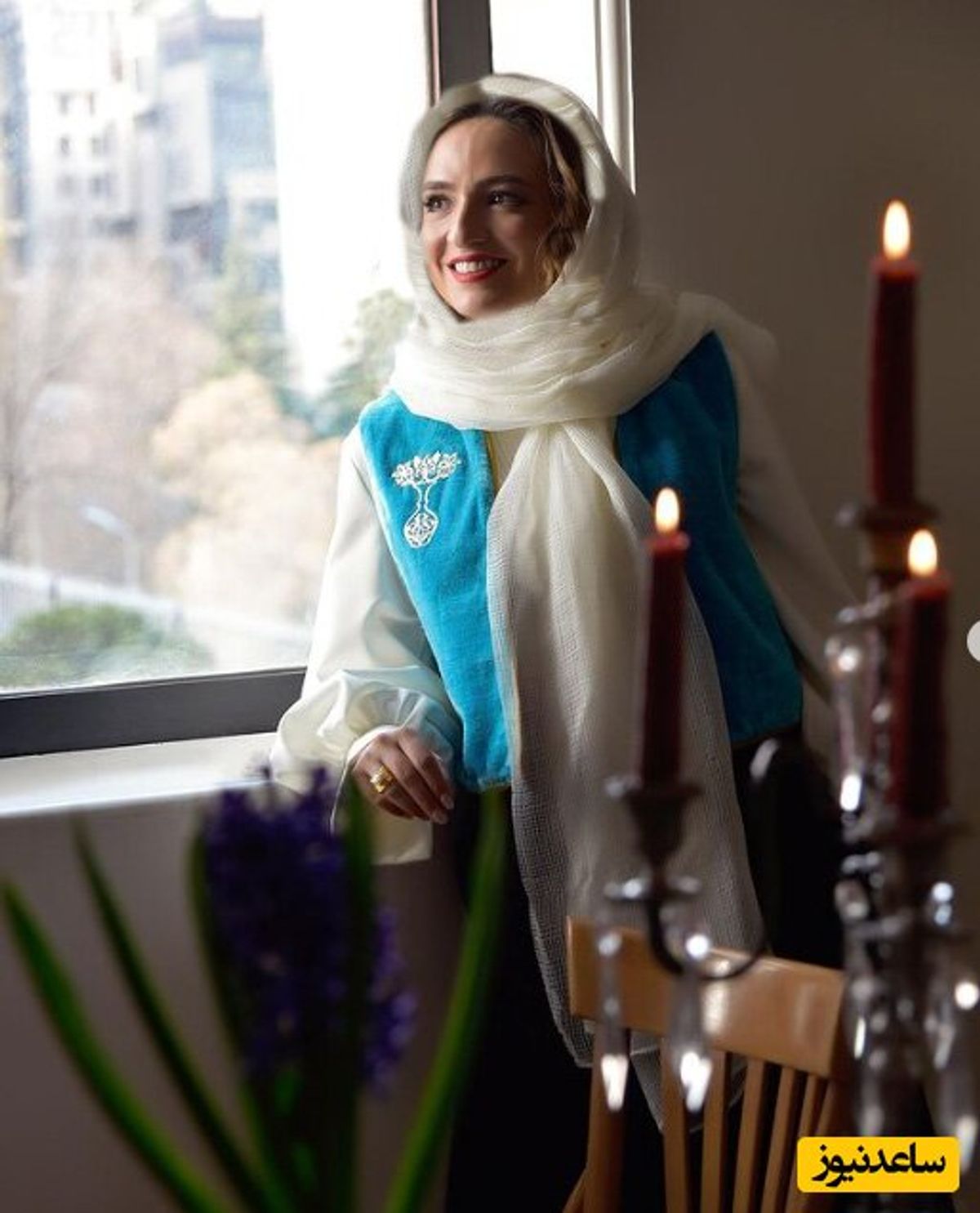 مدل مانتوی دو تکه گلاره عباسی بازیگر سریال شهرزاد با رنگ بهاری