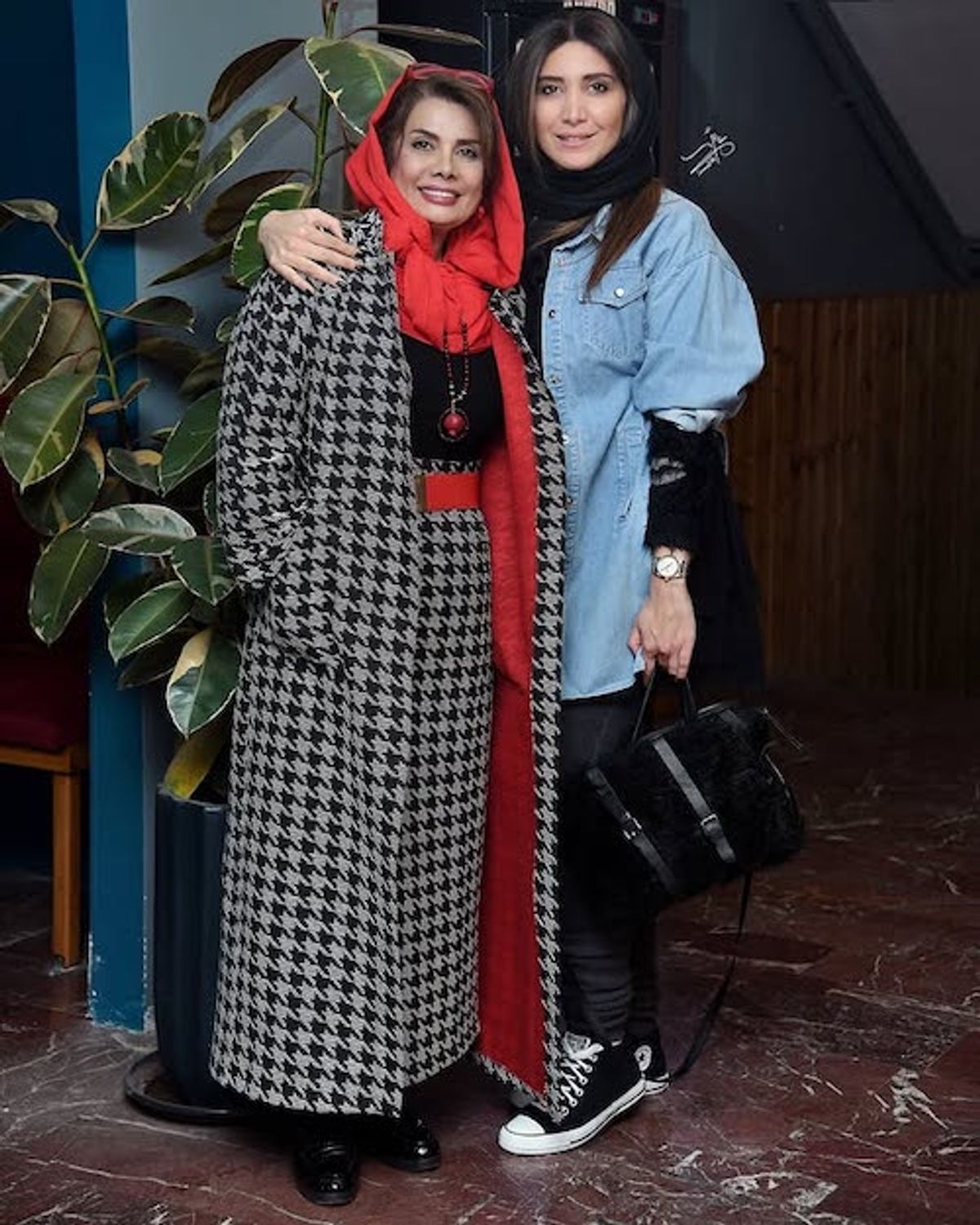 استایل نیکی مظفری با رویه جین و کفش آلاستار مشکی| عکس یادگاری نیکی مظفری با بازیگر زن مشهور