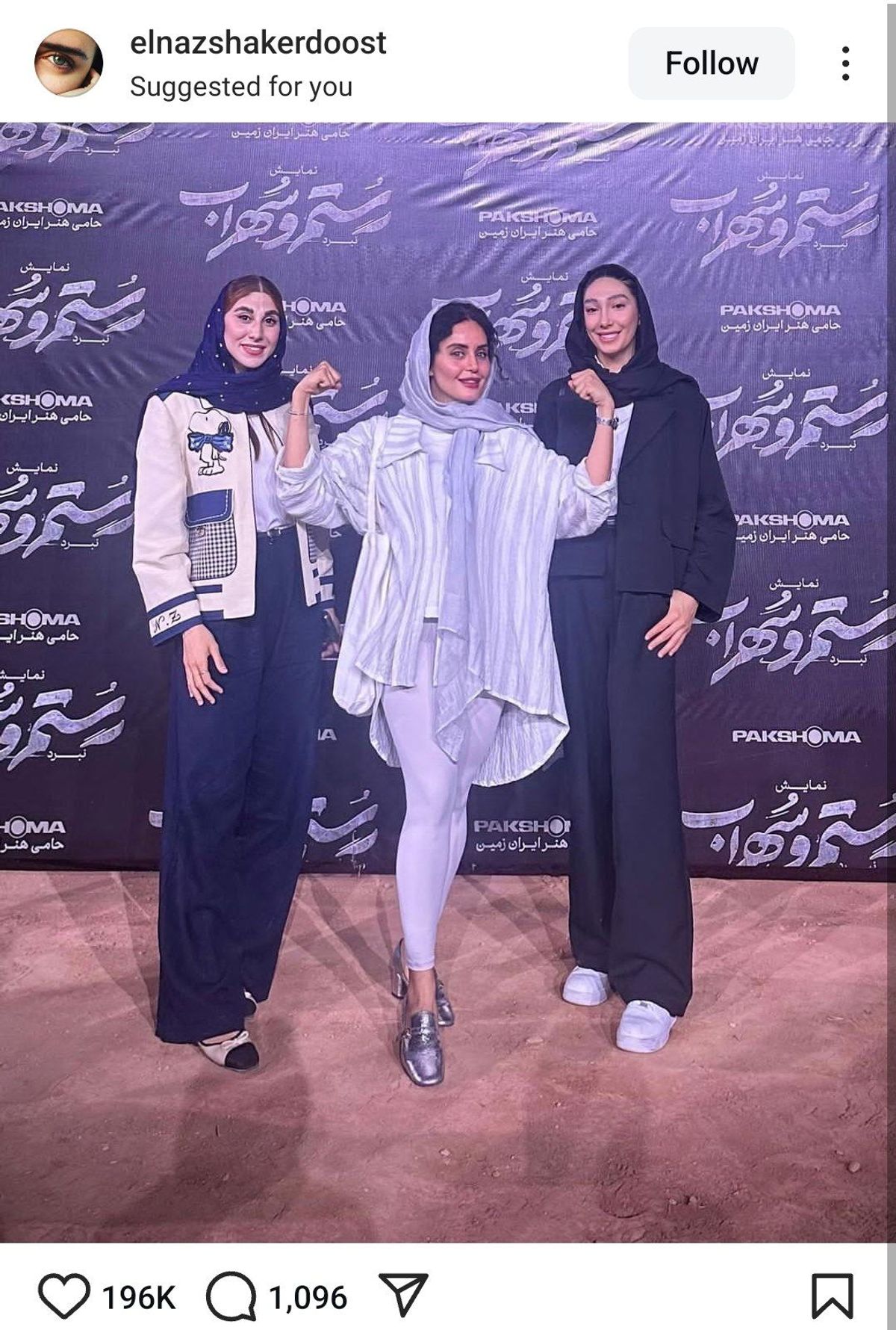الناز شاکردوست با انتشار تصویر زیر نوشت: با تهمینه و گردآفرید امروز ایران زمین، قهرمانان افتخارآفرین سرزمینم.