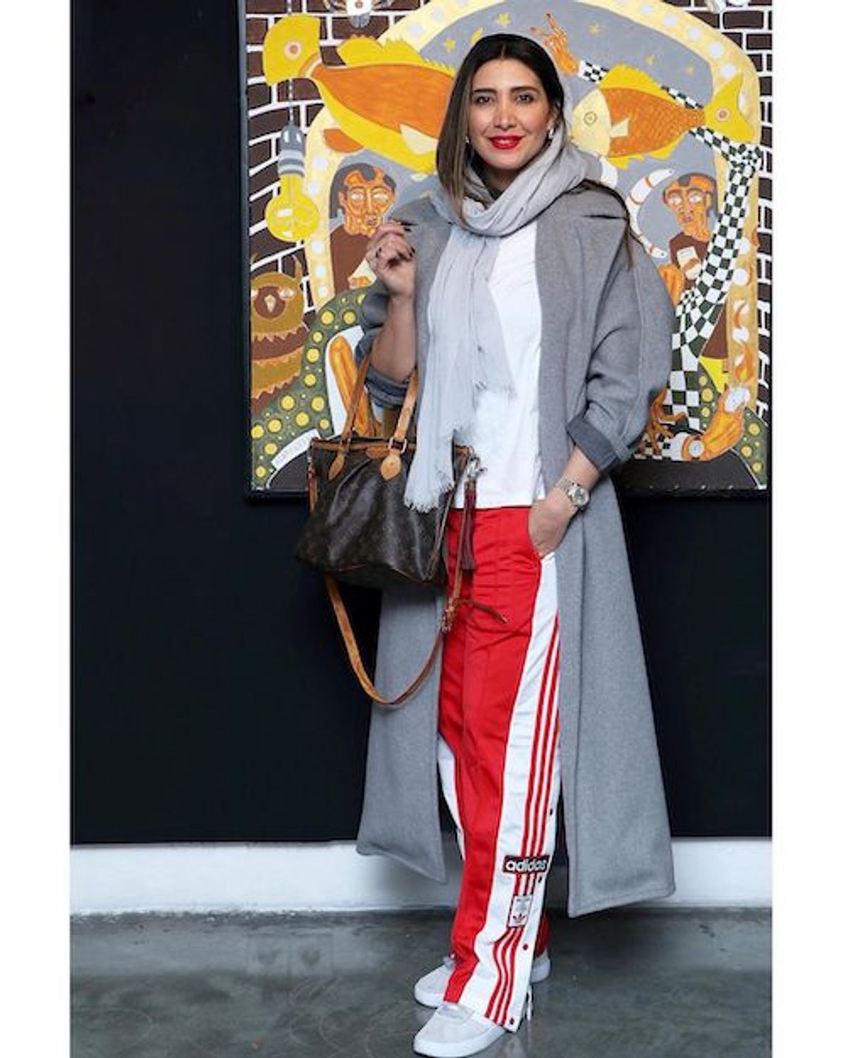 این بازیگر مشهور که بیشتر بر روی صحنه تئاتر فعالیت میکند، اخیراً در نمایشگاه نقاشی آذرخش فراهانی (برادر گلشیفته فراهانی)، با استایلی پاییزی دیده شد که یک شلوار ورزشی قرمز از برند «آدیداس» را به همراه بلوز سفید، پالتوی بلند طوسی و کیفی از برند «لویی ویتون»، برای خلق یک تیپ اسمارت کژوال انتخاب کرده بود.