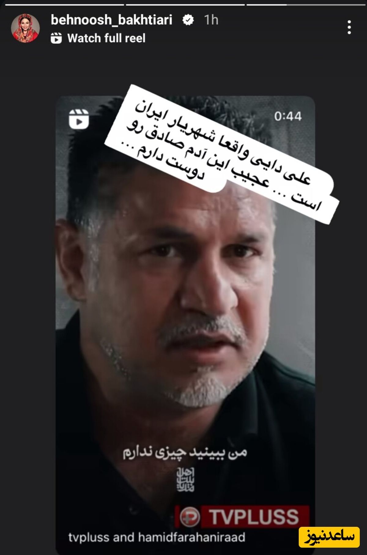 تصویر زیر را بهنوش بختیاری در اینستاگرامش استوری کرده است: