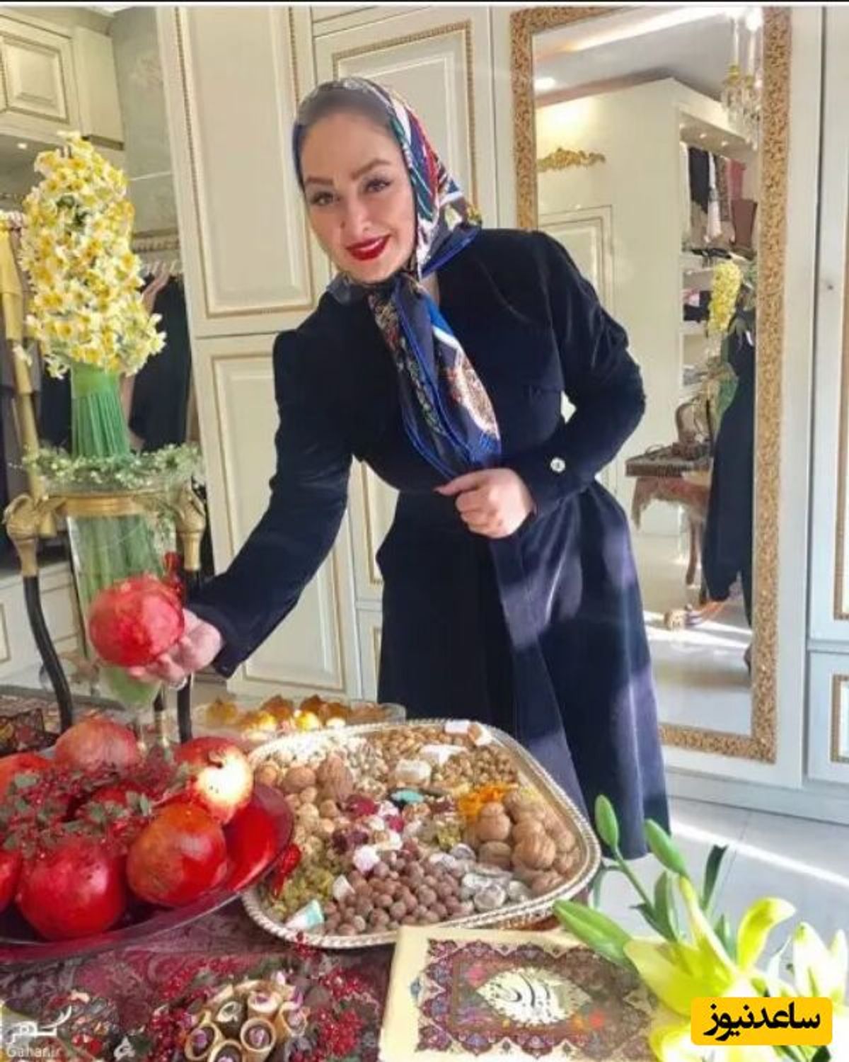 عکسی از الهام حمیدی در کنار میز شب یلدایش در شبکه های اجتماعی منتشر شده است.