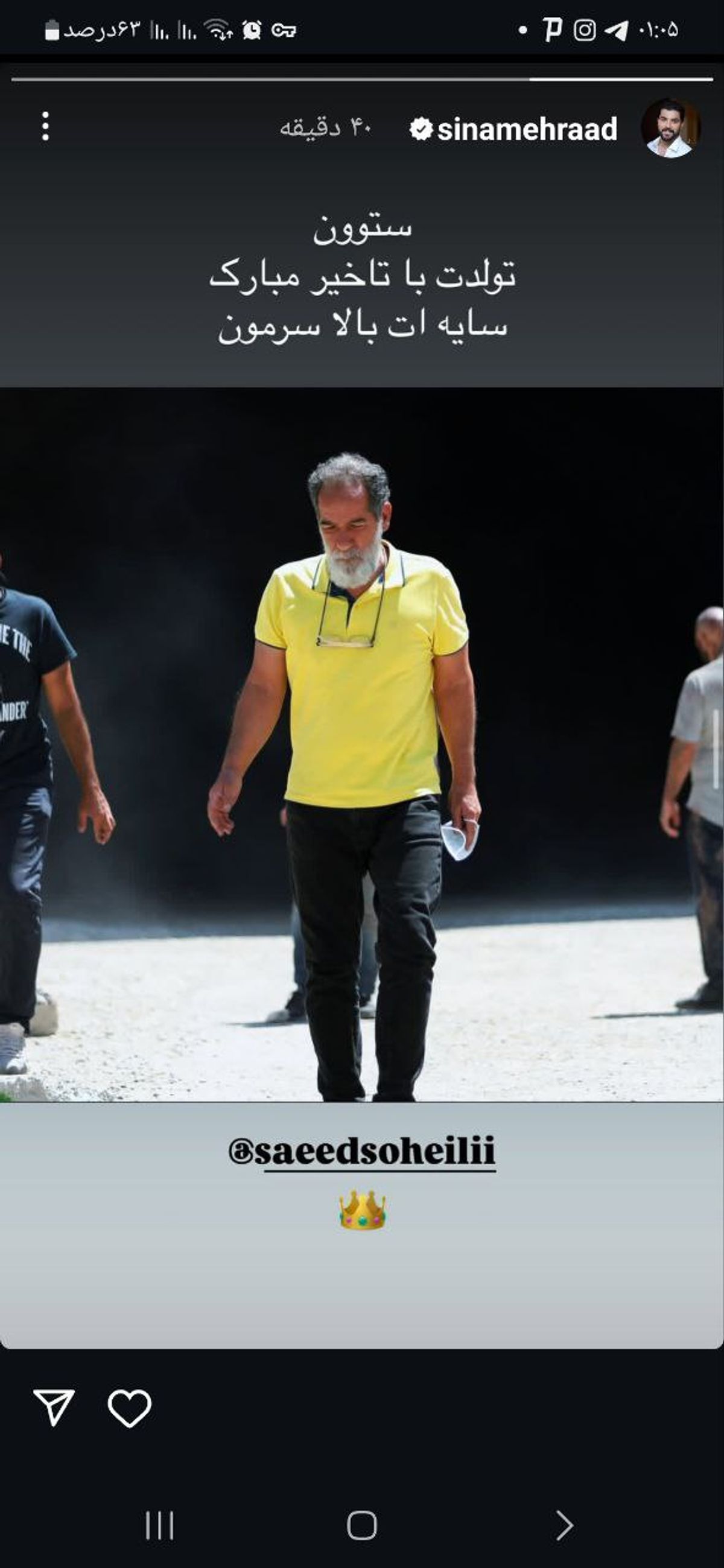 سینا مهراد برای تولد پدرش کارگردان معروف یک پیام احساسی استوری کرد.