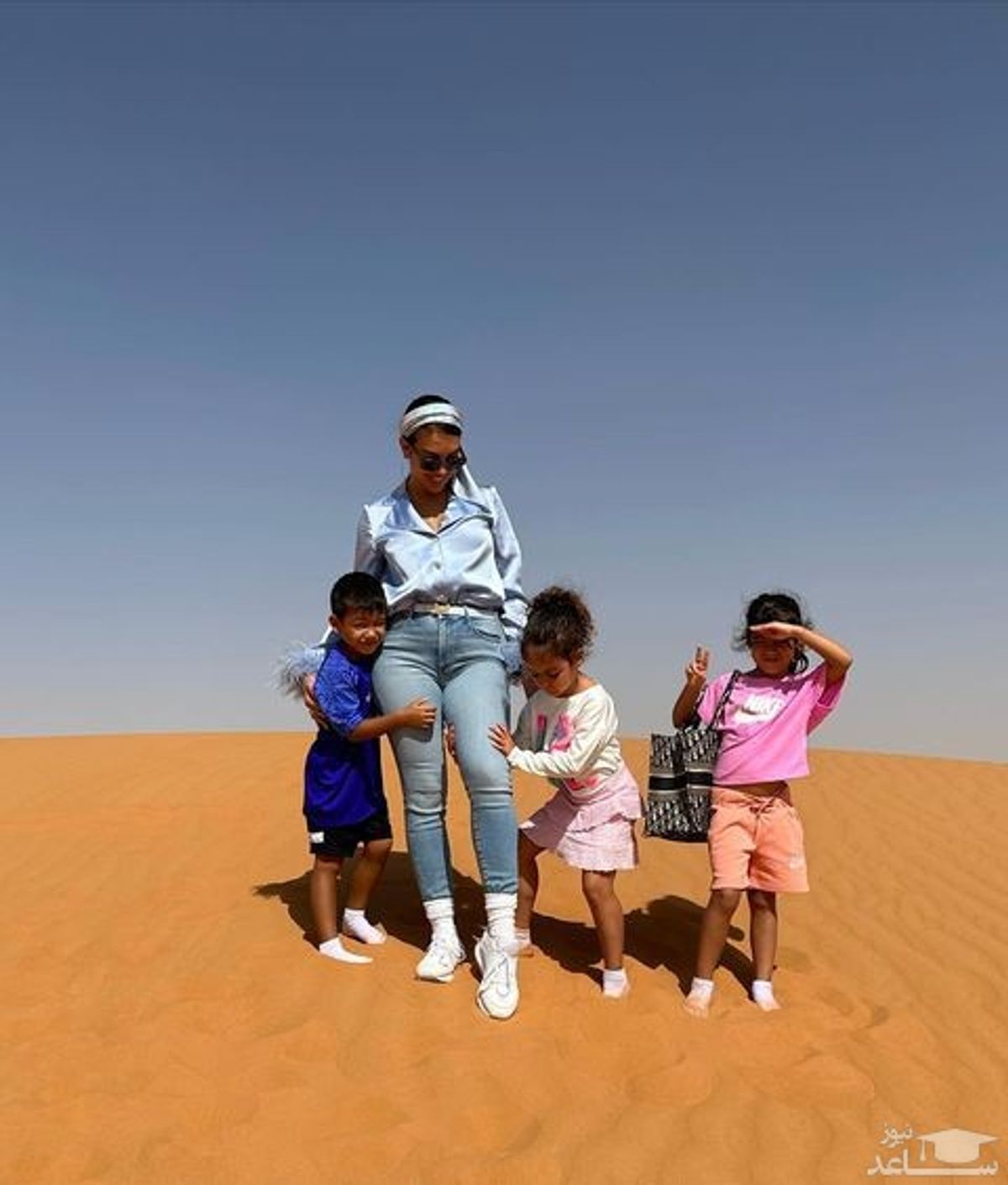 جورجینا رودریگز به همراه همه فرزندانش و پسر رونالدو در حال کویر گردی در عربستان تصاویری از خود منتشر کرده است.