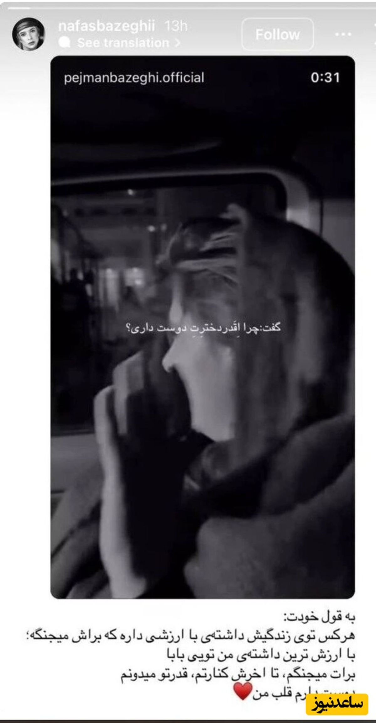 استوری عاشقانه نفس بازغی برای مرد زندگیاش!