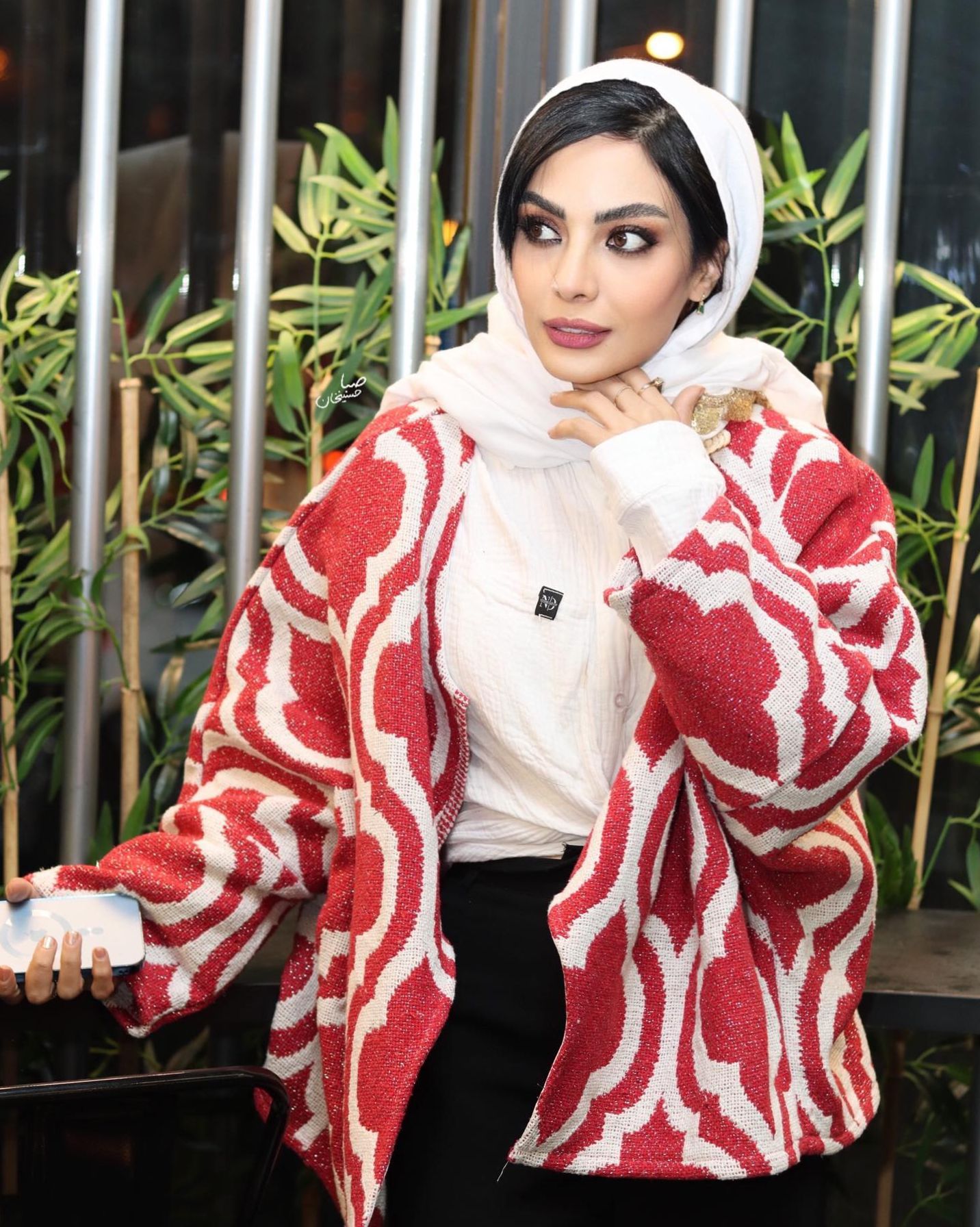 استایل شیک و فانتری صحرا اسداللهی در کافه | میکاپ جذاب صحرا اسداللهی با کت پشمی