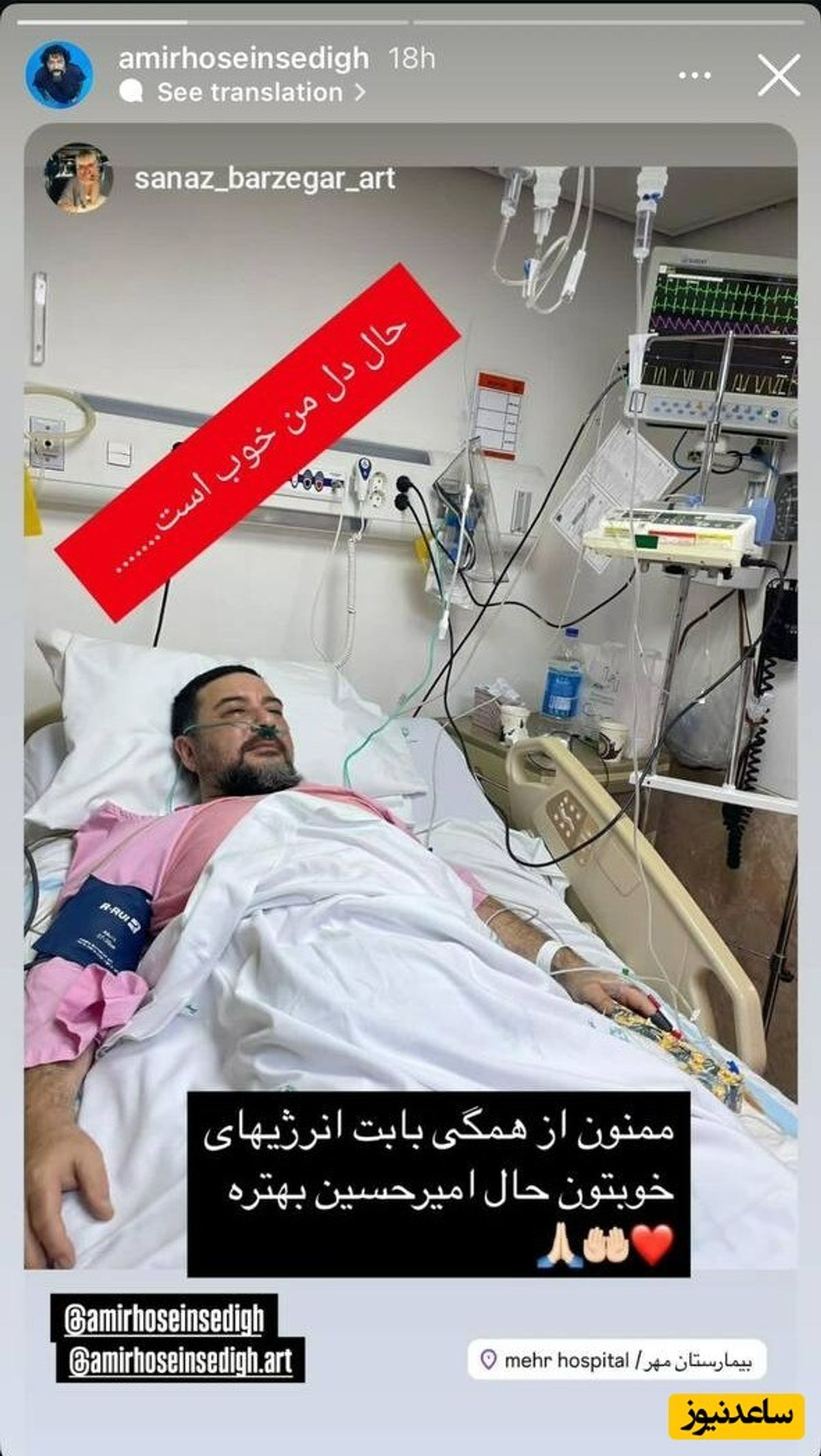 امیر حسین صدیق استوری جدیدی از وضعیت جدیدش روی تخت بیمارستان در اینستاگرام منتشر کرده است.