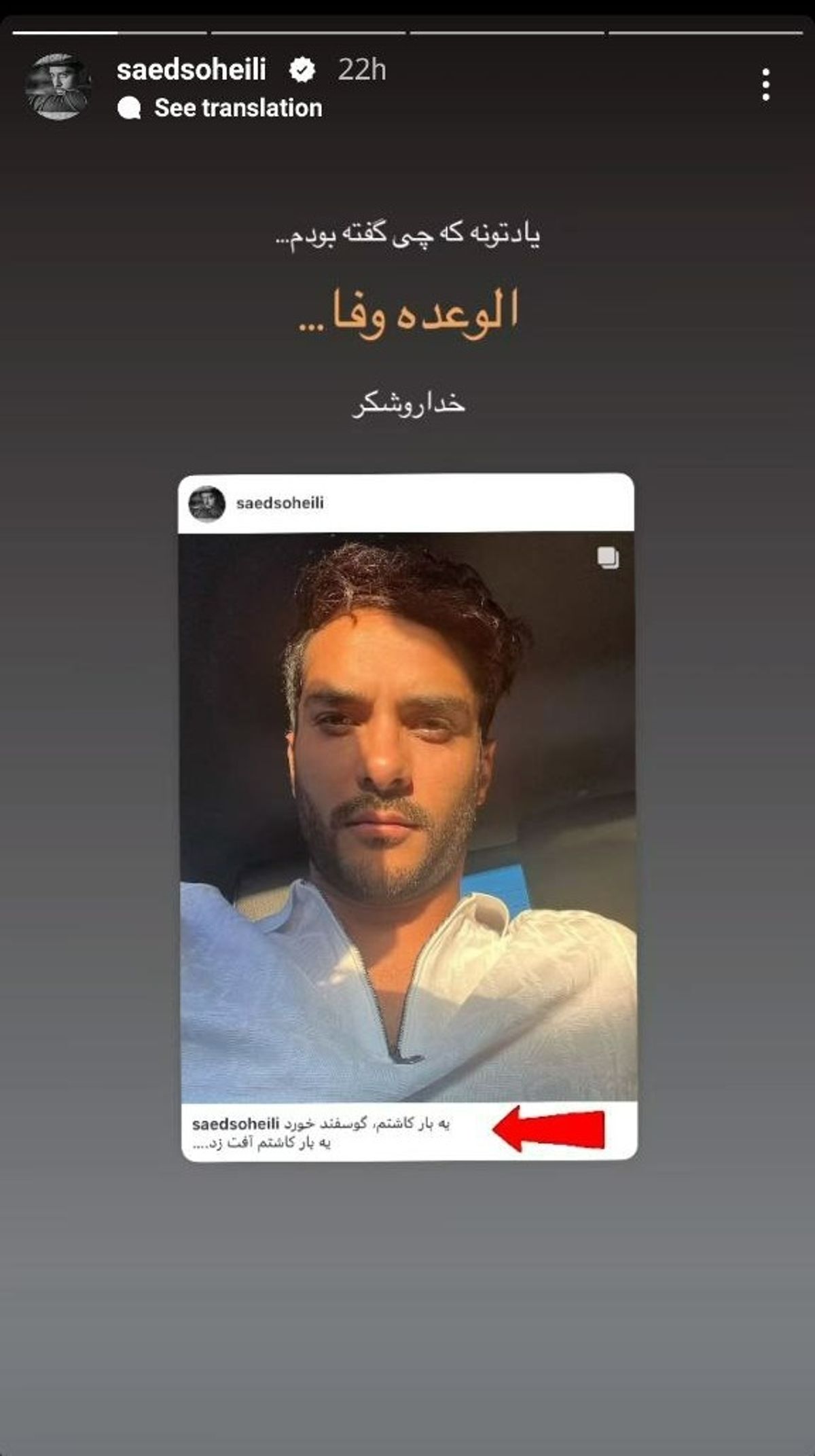 ساعد سهیلی استوری مشکوکی منتشر کرده: مخاطب همسر گلوریا یا کسی دیگر؟
