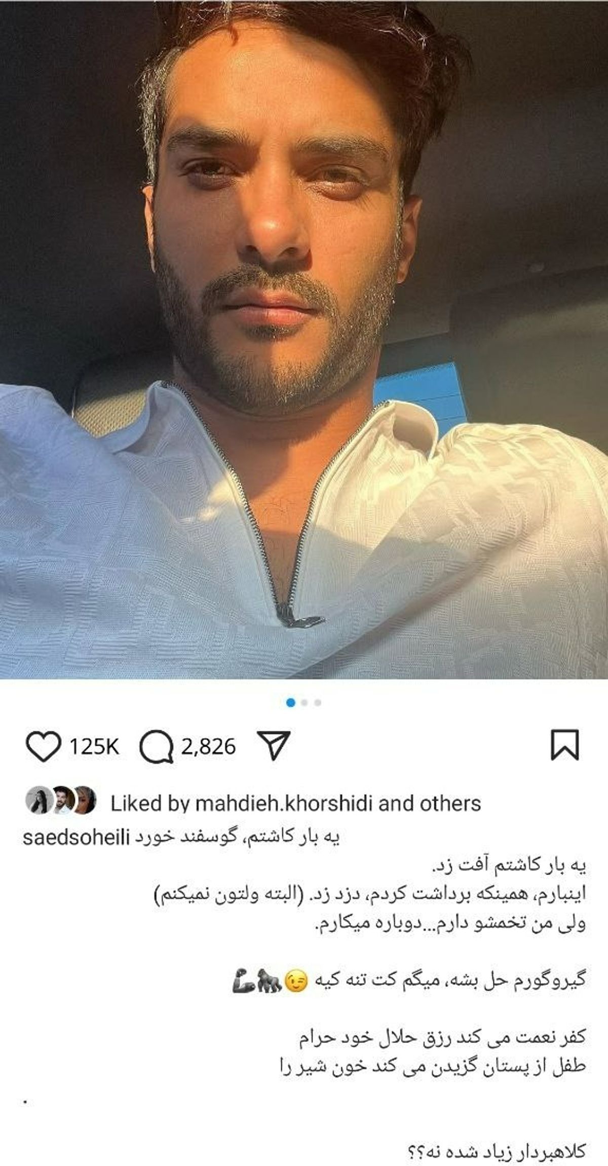 ساعد سهیلی بازیگر فیلم سینمایی پول و پارتی با انتشار عکسی از خود در استوری اینستاگرامش نوشت: