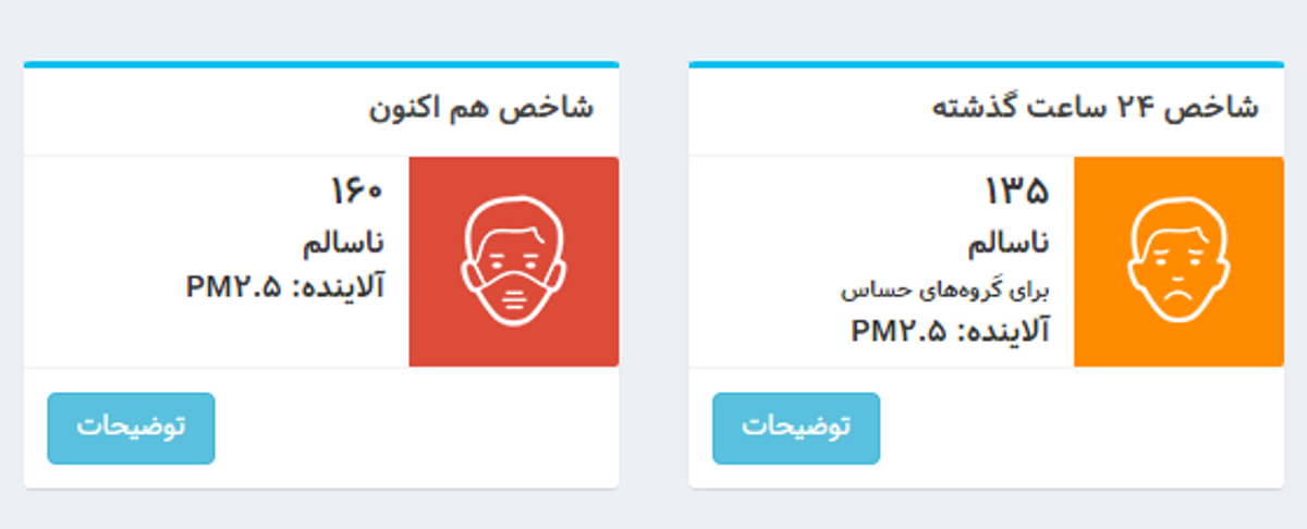 این در حالی است که تهران در مدت مشابه سال پیش ۹ روز هوای پاک، ۱۸۳ روز هوای قابل قبول و ۷۶ روز هوای ناسالم برای گروههای حساس جامعه و ۱۰ روز ناسالم برای همه افراد داشته است.