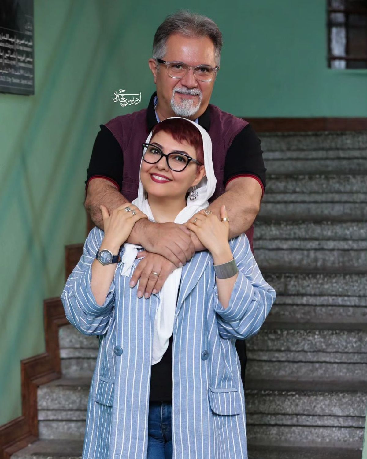عکس عاشقانه جدید آناهیتا همتی و همسرش روی راه پله | تیپ جذاب آناهیتا همتی در 51 سالگی