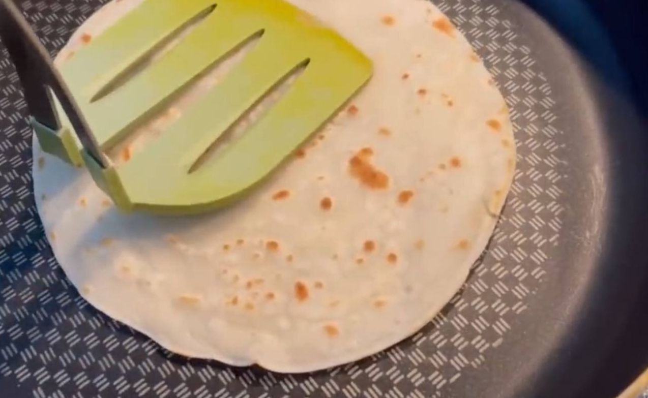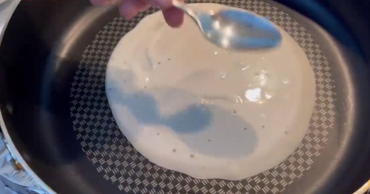 یک ماهیتابه را روی حرارت می گذارید تا داغ داغ شود. یک ملاقه پر از مایع نان را در مرکز ماهیتابه می ریزیم و اجازه می دهیم تا مایع در ماهیتابه پخش شود.