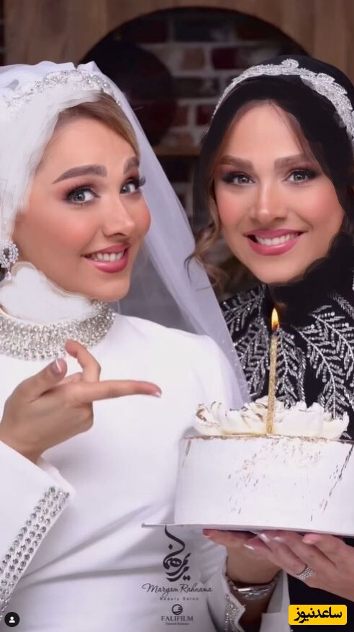 مهرناز دبیرزاده در مراسم عقد خود با روزبه معینی، کیک تولدی زیبا را همراه با خواهر دوقلویش برید.