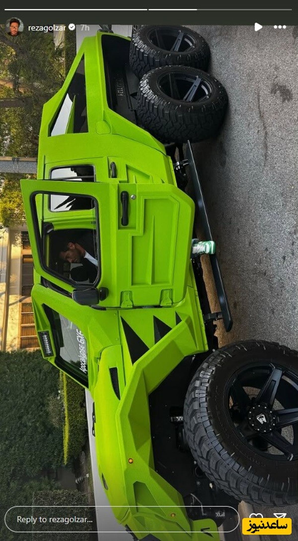 استایل بینظیر محمدرضا گلزار با خودروی آفرود 6 چرخ و رنگ سفارشی نئون متالیک! | نگاهی به غول آفرود محمدرضا گلزار: خودروی 6 چرخ با رنگ سفارشی نئون متالیک و طراحی منحصر به فرد!