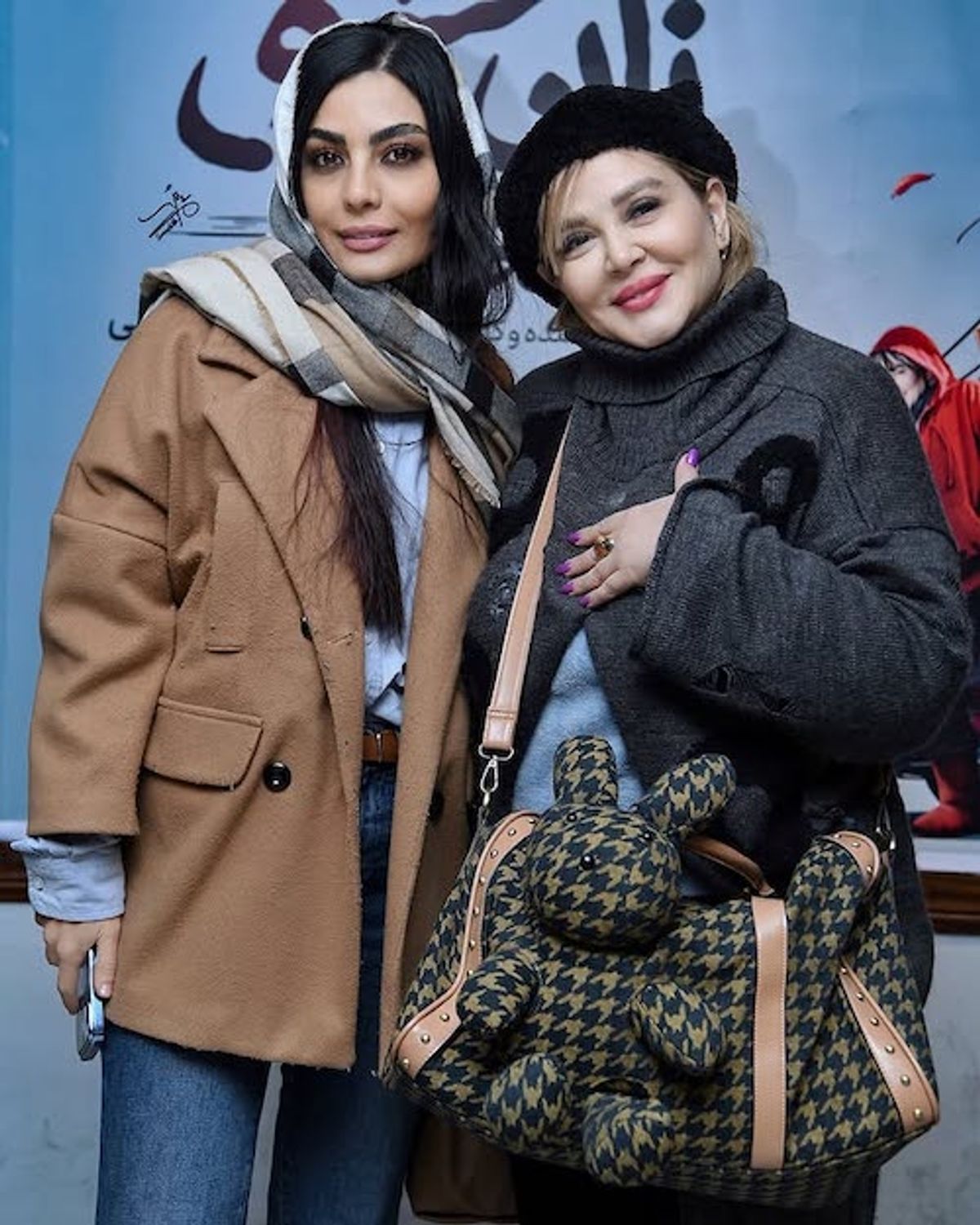 لباسهای عجیب و غریب بهاره رهنما | استایل بهاره رهنما با کیف بزرگ با طرح پیچازی و عروسک خرگوشی
