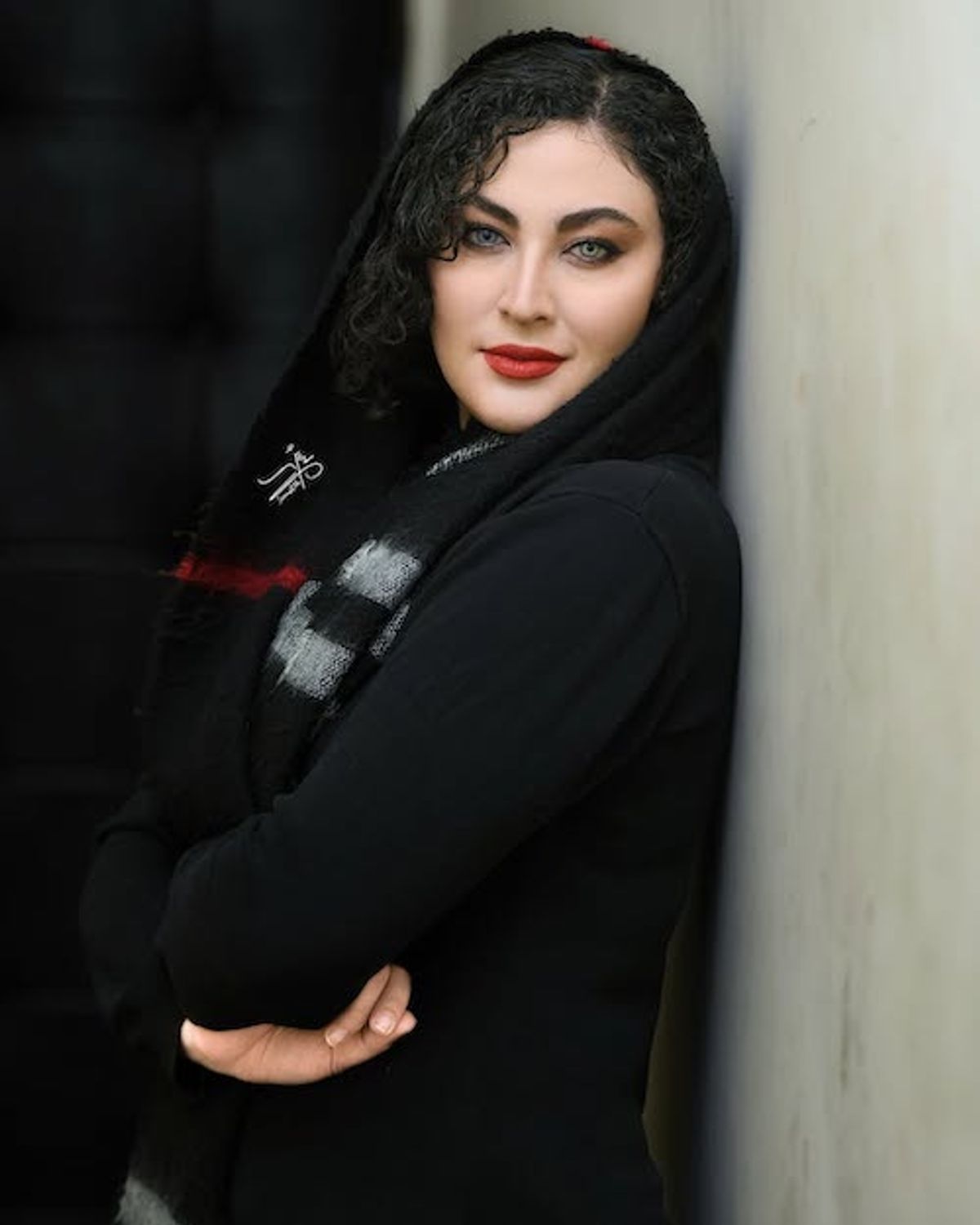 چهره مرموز مریم مومن با لنزهای سبز| استایل تمام مشکی مریم مومن با آرایش خاص